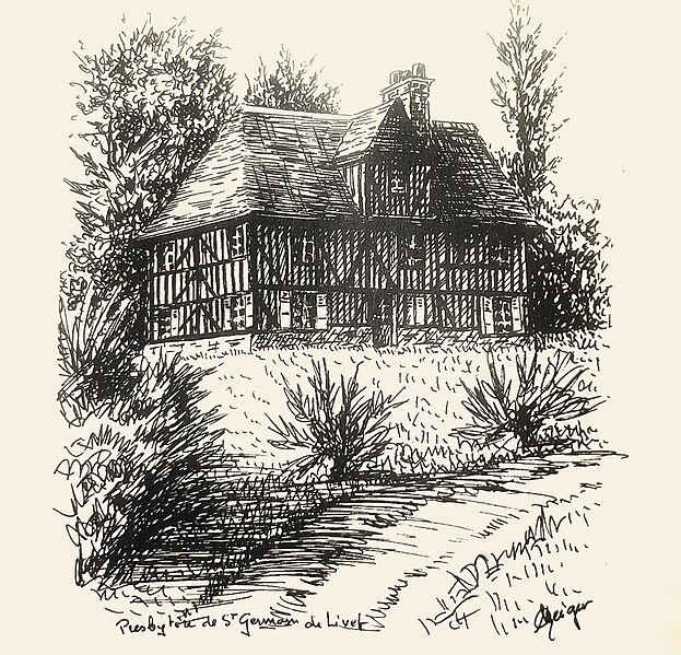 L'église Saint‑Germain de Saint‑Germain‑de‑Livet est une église catholique située dans la commune éponyme du Calvados. Elle jouxte l'ancien presbytère daté des XVe et XVIe siècles et se situe au nord‑est du château. L'édifice actuel relève des XVIe et XIXe siècles. Selon Arcisse de Caumont, l'église primitive était romane et remontait au XIe siècle. Une chapelle seigneuriale a été ajoutée au XVIe siècle. Des remaniements aux XVIe et XVIIe siècles ont notamment vu le remplacement des fenêtres primitives et la création d'une nouvelle porte. Un important chantier au XVIe siècle a permis l'installation de vitraux. Au XIXe siècle, l'église médiévale a été en grande partie démolie et remplacée sans que l'autorité ecclésiastique ou administrative ne s'y oppose. Arcisse de Caumont a sévèrement critiqué le nouvel édifice du XIXe siècle. L'ancien bâtiment alternait pierres et briques, en particulier sur le mur sud. La partie ancienne préservée reste visible de l'extérieur. L'édifice fait l'objet d'une inscription partielle au titre des monuments historiques depuis le 5 mars 1959. La chapelle conserve des orants des fondateurs et de leur fils, datés de la fin du XVIe siècle et sans inscriptions, représentant des membres de la famille de Tournebu. Pour approfondir, on peut consulter la notice d'Arcisse de Caumont dans la Statistique monumentale du Calvados ainsi que les ressources en ligne telles que Mérimée, Clochers de France et l'Observatoire du patrimoine religieux.