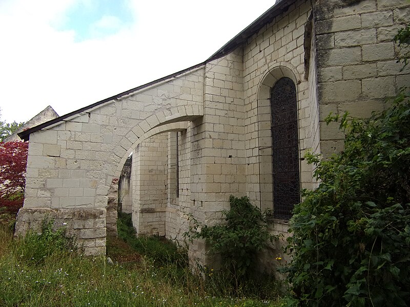 Construite sur les terrasses basses de la rive gauche de la Vienne, près de la route longeant la rivière et à environ 2 km au nord‑ouest du chef‑lieu communal, l'église suit l'inclinaison du coteau : la nef regarde le nord‑ouest et le chœur le sud‑est. L'édifice présente une voûte en berceau brisé nervurée, avec des lunettes sur un côté, tandis que la nef est couverte d'une voûte de type angevin du XIIIe siècle ; la plupart des clés de voûte sont décorées. La nef compte trois travées et mesure 29 mètres de long ; la première travée, abritée par un préau, n'est pas voûtée et contient le portail. Le mur gouttereau nord de cette première travée conserve les plus anciens éléments : blocs carolingiens en remploi et assises du Xe siècle sur une hauteur d'environ trois mètres.