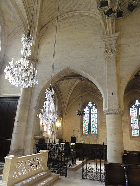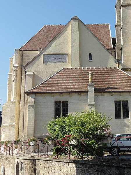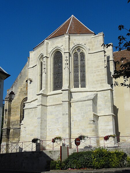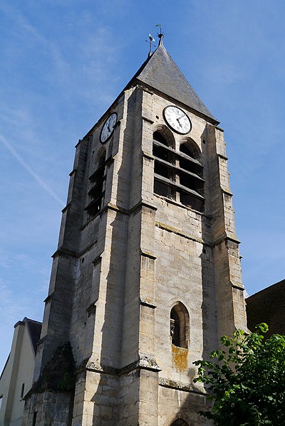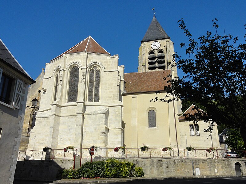 L'église Saint‑Germain‑l'Auxerrois est une église catholique paroissiale située à Presles, dans le Val‑d'Oise. Elle conserve des éléments anciens liés à sa donation au prieuré Saint‑Martin‑des‑Champs vers le milieu du XIIe siècle ; les plus anciens sont visibles dans la chapelle Saint‑Joseph au nord du chœur. Pour l'essentiel, l'édifice actuel résulte d'une reconstruction à partir de la fin du XVe siècle et du milieu du XVIe siècle dans un style gothique flamboyant, le clocher étant de facture gothique du XIVe siècle et la façade datant de 1876. Le plan est dissymétrique et sans transept : une nef de trois travées accompagnée d'un unique bas‑côté sud, un chœur de deux travées suivi d'une abside à cinq pans, la chapelle de la Vierge au sud, une chapelle Saint‑Joseph au nord et un clocher placé au nord de la dernière travée de la nef. La nef et le bas‑côté, de facture modeste, ne sont pas voûtés et sont couverts de fausses voûtes en berceau en bois plâtré, tandis que le chœur et la chapelle de la Vierge sont soigneusement bâtis et voûtés d'ogives. L'architecture mêle motifs flamboyants et éléments de la Renaissance : on relève des piliers ondulés et des chapiteaux flamboyants, des arcs‑doubleaux retombant sur des chapiteaux corinthiens et des voûtes en anse de panier. La chapelle de la Vierge se distingue par un réseau flamboyant, des frises sculptées représentant personnages pittoresques, animaux souvent fantastiques et écussons, ainsi que par deux clés de voûte et des niches à statues ornées de dais découpés. On note aussi le soubassement rectangulaire de l'abside, des sculptures de chimères et de créatures fantastiques sur les archivoltes, et des clés de voûte peintes portant notamment les armes de la famille de Nicolaï, seigneurs de Presles. La chapelle Saint‑Joseph présente des vestiges très anciens, peut‑être romans, comme un pilier cylindrique au chapiteau fortement dégradé, et des voûtes d'arêtes qui traduisent la complexité des campagnes de construction. Le clocher, sobre et essentiellement gothique, culmine à 35 mètres ; il se compose d'une base, d'un étage intermédiaire, d'un beffroi et d'un toit en ardoise, ses substructions remontant aux périodes anciennes. Le mobilier attire l'attention : vingt‑deux stalles achetées à Saint‑Cloud au XIXe siècle, dont six miséricordes de réemploi du XVIe siècle représentant métiers, scènes allégoriques et animaux, un maître‑autel en fonte présenté à l'Exposition universelle de 1867, une cuve de chaire du XVIIe siècle, des fonts baptismaux en marbre du XVIIIe siècle, des statues en bois polychrome et une statuette de la Vierge conservée en sacristie. L'église possède également neuf tableaux de provenances et datations diverses et des vitraux datés de 1863 à 1892, offerts par des paroissiens et réalisés notamment par les ateliers d'Antoine Lusson et les ateliers Luchon. Une nécropole mérovingienne a été mise au jour sous le parvis lors des fouilles menées en 1974, attestant une fréquentation ancienne antérieure à la première mention documentaire. L'édifice a connu de nombreuses interventions : reconstitution du portail méridional en 1975, révision de l'orgue entre 1970 et 1975, et une restauration d'ensemble engagée par la municipalité à partir de 2012, conduite en plusieurs campagnes jusqu'à la fin prévue pour 2018. La façade occidentale et la nouvelle sacristie du XIXe siècle ont été financées par Auguste Potron et réalisées d'après le projet de l'architecte Léopold Hardy, le tympan ayant été sculpté par Arsène Letellier en 1876. L'église Saint‑Germain est protégée au titre des monuments historiques par un arrêté du 16 juin 1926. Sur le plan paroissial, la dévotion à saint Germain est très ancienne, la paroisse a été réaffectée aux différents diocèses régionaux depuis la Révolution et les messes dominicales y sont en principe célébrées chaque dimanche à 10 h 30.