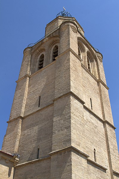 Située dans la commune de Caux, dans l'Hérault, l'église Saint-Gervais présente une abside à sept pans à l'extérieur et circulaire à l'intérieur. Le bandeau qui court à la base de la voûte a été coupé au XIVe siècle pour agrandir la baie médiane. Les arcs latéraux intérieurs sont reproduits à l'extérieur, une disposition peu fréquente dans cette partie du Midi. À la fin du XIIIe ou au début du XIVe siècle, un clocher a été ajouté ; il forme un porche au midi et repose sur deux piles isolées, de plan octogonal pour faciliter la circulation, qui rattrapent le carré par des encorbellements. Le clocher se termine par un étage ajouré présentant sur chaque face deux baies jumelles sous un arc de décharge formant encorbellement. La plateforme était couronnée d'échauguettes aux angles ; celles-ci ont été arasées et remplacées par une balustrade en fer. Le sommet du clocher passe à l'octogone ; cet étage est éclairé par de petites roses à quatre lobes et se termine par une flèche de pierre assez trapue. Les registres paroissiaux conservés, qui débutent en 1672, indiquent que l'église et son cimetière avaient jadis pour vocables saints Gervais et Protais. L'édifice est classé au titre des monuments historiques depuis le 10 octobre 1913.