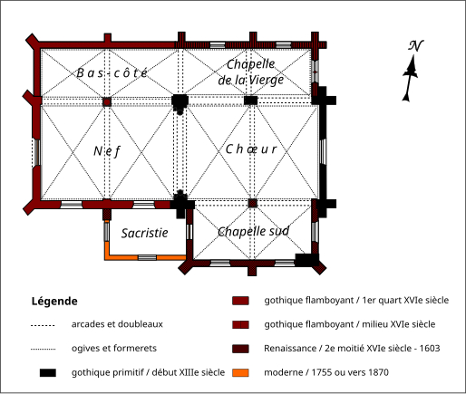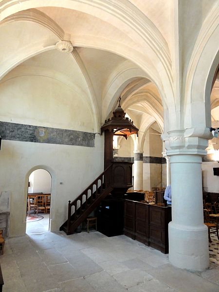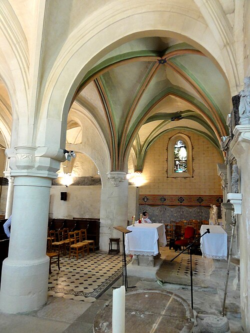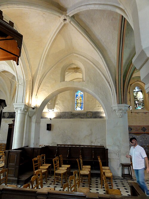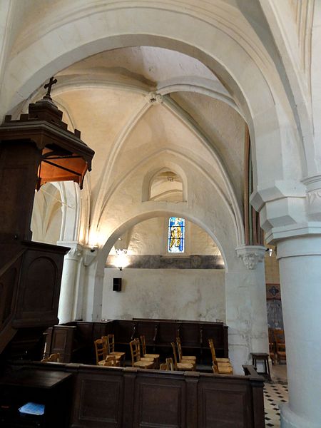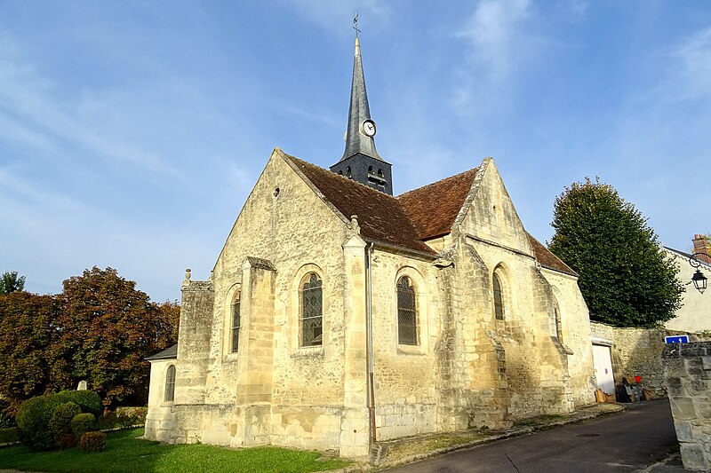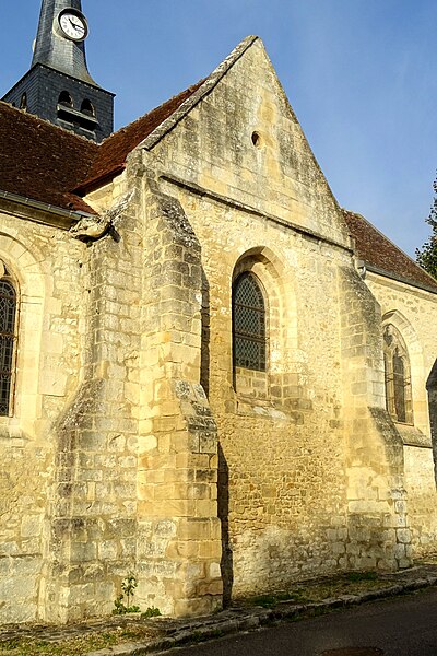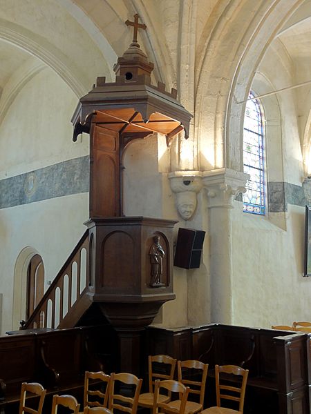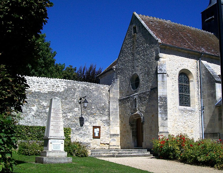 L'église Saint-Gervais de Courteuil, située dans l'Oise en Hauts-de-France au cœur du village, est une église catholique paroissiale inscrite aux monuments historiques par arrêté du 20 février 1970. Son chœur à chevet plat constitue la partie la plus ancienne et relève d'un gothique primitif du début du XIIIe siècle. Au XVIe siècle, le bâtiment a été élargi en deux phases par l'adjonction de collatéraux nord et sud aux styles distincts, le premier de type flamboyant, le second marqué par des influences de la Renaissance. La nef courte, accompagnée d'un unique bas-côté au nord, présente encore un style propre qui traduit les remaniements successifs. Malgré cette diversité stylistique, les parties orientales conservent une unité spatiale remarquable. Le retable du chevet et au moins deux gisants proviennent probablement du prieuré de Saint-Nicolas-d'Acy implanté dans la même commune. Courteuil, attestée dès l'époque carolingienne, dépendait paroissialement du diocèse de Senlis jusqu'à la fin de l'Ancien Régime et la collation de la cure appartenait au prieuré clunisien de Saint-Nicolas-d'Acy. Les sources concernant l'histoire paroissiale sont rares : les registres paroissiaux ne subsistent qu'à partir de 1692 et les recherches du XIXe siècle portent surtout sur le prieuré. Le texte mentionne plusieurs curés anciens, dont Michel Pelins, Jean le Charon, Jean Matlyn, Gilles Noury, Jean-Louis Godard, Jean Cadot, Pierre Cléry, Nicolas de Saint-Leu et Joseph-Antoine Legat, ainsi que des éléments biographiques et funéraires les concernant. Au XVIIIe siècle la paroisse a connu la bénédiction de nouvelles cloches et la construction d'une sacristie, puis la Révolution entraîna la vente des biens de la cure et l'interruption du culte jusqu'au Concordat. L'église est aujourd'hui rattachée à la paroisse Saint-Rieul de Senlis et l'Association pour la sauvegarde de l'église a conduit d'importantes restaurations. Orienté, l'édifice se compose d'une nef de deux travées, d'un bas-côté nord, d'un chœur de deux travées flanqué de deux chapelles latérales se terminant toutes par un chevet plat, et d'une sacristie occupant l'angle entre la nef et la chapelle sud. L'ensemble est voûté d'ogives et le petit clocher en charpente, coiffé d'une flèche galbée, s'élève au-dessus de la première travée du chœur. La toiture du collatéral nord est perpendiculaire à celle de la nef et forme un pignon vers le nord ; la chapelle sud est couverte de façon analogue vers le sud et la chapelle nord présente deux toitures en bâtière distinctes, si bien que trois pignons se succèdent sur le flanc nord. La nef et le bas-côté montrent un gothique tardif et certains éléments évoquent la transition vers la Renaissance : nervures encore aiguës, ogives surbaissées, absence de formerets et clés de voûte décorées. Le bas-côté, partiellement englobé dans une propriété privée, manque de fenêtres et reste sombre et peu utilisé, n'abritant guère que le confessionnal. Le chœur, largement remanié lors de l'adjonction des collatéraux, conserve l'arc triomphal à double rouleau et des cul-de-lampe et chapiteaux sculptés ; certains supports ont été mutilés à la Révolution. Les chapelles latérales sont décorées selon leur époque : la chapelle nord, du premier quart du XVIe siècle, présente des culs-de-lampe sculptés variés, des clés de voûte flamboyantes et un remplage de chevet caractéristique, tandis que la chapelle sud affiche des profils et modénatures de voûtement proches de la Renaissance, avec ogives et fenêtres en plein cintre ornées de têtes trilobées. L'extérieur, de silhouette ramassée, est construit en moellons avec quelques éléments en pierre de taille pour les chaînages, contreforts et le portail occidental mouluré en anse de panier, qui comporte une niche à statue et un oculus. Le chevet plat révèle des contreforts à ressauts et des détails soignés, notamment des chaperons et des vases sculptés aux extrémités de la chapelle sud. Le mobilier comprend six éléments classés au titre des objets : une Vierge à l'Enfant du XIVe siècle, des fonts baptismaux du XIVe siècle, deux gisants (dont celui du chevalier Guy de La Tour), la dalle funéraire du curé Jean Matlyn datée de 1480 et la dalle de l'écuyer François de Waroquier datée de 1554. Plusieurs pièces portent des traces de polychromie ancienne et d'autres ont été mutilées pendant la Révolution. La pierre tombale de Jean Matlyn, fragmentée, présente un transi et une épitaphe latine partiellement illisible, tandis que la dalle de François de Waroquier conserve une longue inscription en gothique et plusieurs écussons. L'ensemble stylistique de l'église témoigne des phases de construction du XIIIe au XVIe siècle et des réfections postérieures, sans qu'un état primitif complet subsiste. Des messes dominicales sont célébrées le samedi précédant le premier dimanche des mois pairs à 18 h 30.