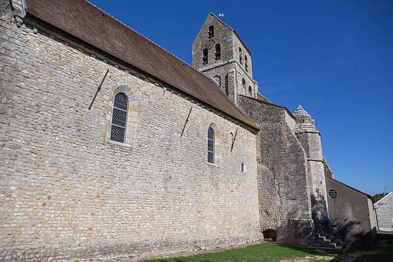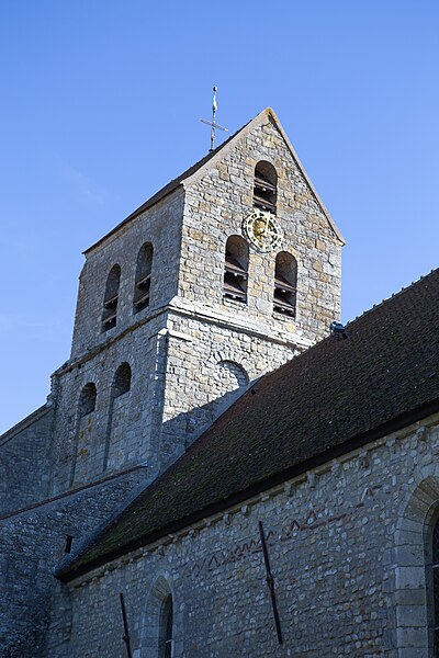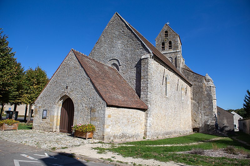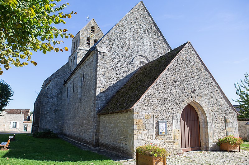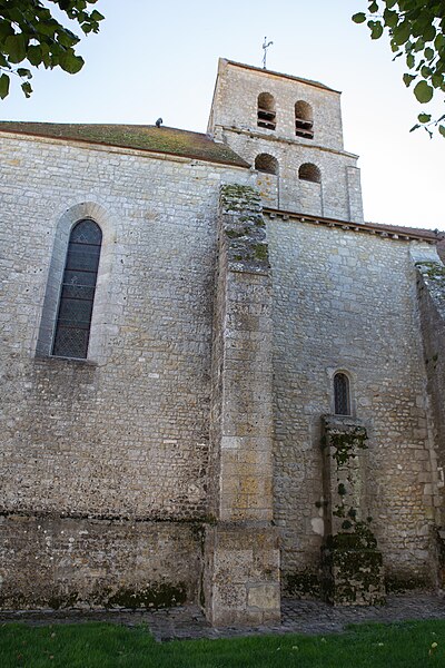 L'église Saint-Gervais et Saint-Protais présente des éléments remontant à plusieurs périodes. L'abside date du XIIIe siècle, ses nervures ayant été refaites au XVe siècle. Le chœur comporte trois travées voûtées d'arête en blocage ; deux travées jouxtant celle située sous le clocher ont été reconstruites au XVe siècle et comportent la porte extérieure latérale. Le clocher roman primitif s'élève sur la travée centrale ; il a été reconstruit en 1231 puis en 1647 après un incendie. Le chœur avait déjà été reconstruit en 1236 par Guy de Bougy, puis remanié au XVe siècle. La nef, attribuée au XIIe siècle, est couverte d'une voûte en bois avec entraits et poinçons apparents et possède des fenêtres latérales ouvertes au XIIIe siècle. La porte sous le porche présente des caractéristiques du XIIIe siècle. Dans le pignon ouest, une fenêtre du XIIIe siècle a été aménagée à l'emplacement d'une ancienne baie en plein cintre, dont subsiste encore le bandeau de couronnement. L'extérieur conserve une corniche ornée de modillons romans. Des remplois et des vestiges de baies témoignent d'ouvertures plus anciennes, peut-être des XIe ou XIIe siècles, et l'église pourrait être antérieure au XIe siècle.