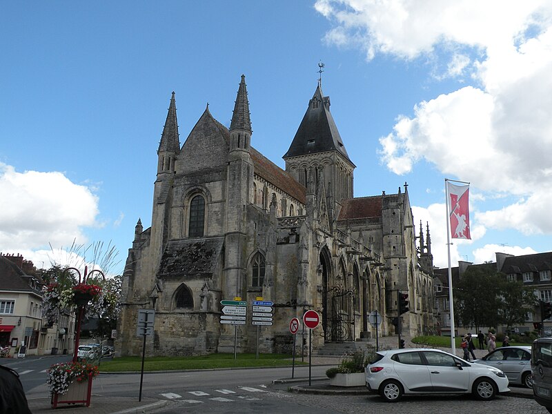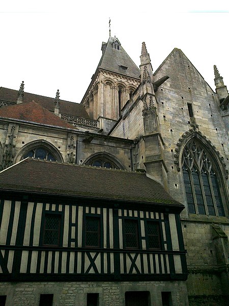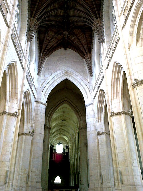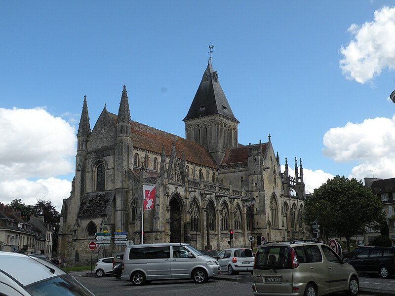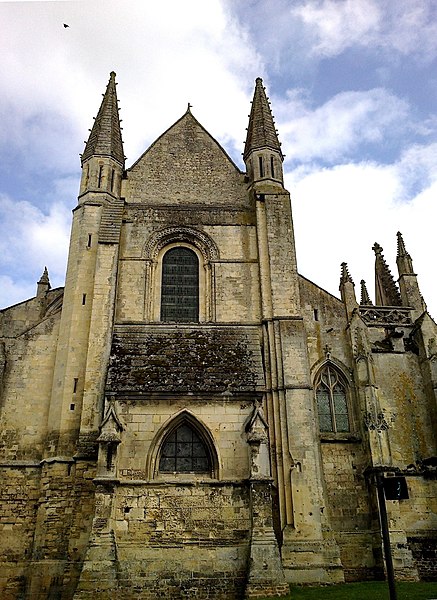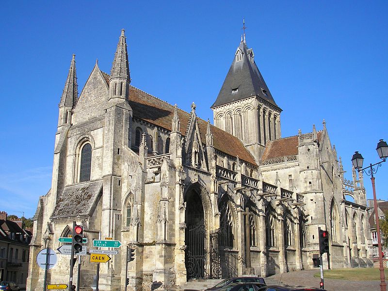 L’église Saint‑Gervais‑Saint‑Protais de Falaise, située rue de Caen (D658) au nord du centre‑ville, est un édifice catholique du département du Calvados en Normandie. Elle dépendait autrefois du diocèse de Sées et relevait du patronage de l’abbaye Sainte‑Trinité de Caen. La construction primitive remonte à la fin du XIe et au début du XIIe siècle ; l’édifice fut achevé et consacré en 1134, alors dédié à saint Jacques et à saint Christophe. Les parties romanes encore visibles — le mur sud de la nef, la tour‑lanterne et la façade occidentale — datent de cette période. Après des dommages lors du siège de 1204, l’église a été remaniée en style gothique : le mur nord de la nef et des arcs‑boutants datent de cette phase. D’autres transformations ont suivi au cours du XVe et du XVIe siècle : le transept a été modifié après 1417, les chapelles sud et le porche furent édifiés à la fin du XVe siècle et les chapelles nord au XVIe siècle. Le chœur, le déambulatoire et leurs chapelles, incendiés en 1562 lors des guerres de Religion, furent reconstruits dans la seconde moitié du XVIe siècle. La façade est flanquée de deux tourelles et la grille du portail sud provient du château de Carabillon à Cordey. L’édifice a été gravement endommagé pendant les bombardements de 1944 puis restauré dans les décennies suivantes. L’église est classée au titre des monuments historiques par la liste de 1862.
