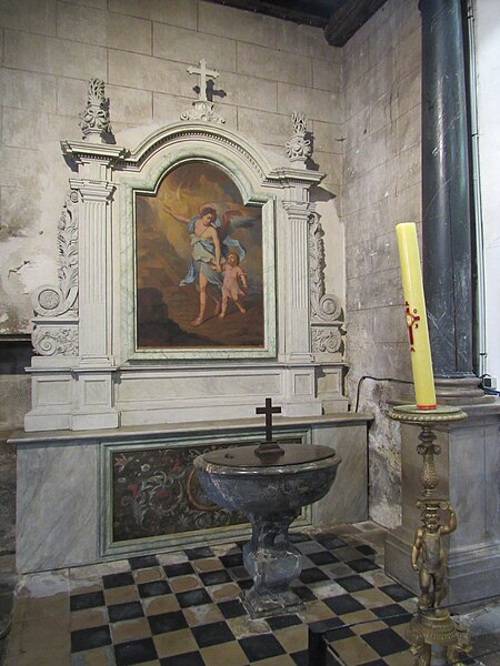 L'église Saint-Gildas est une église paroissiale catholique située à Auray, dans le Morbihan. Elle dépend du doyenné d'Auray et une messe y est célébrée le dimanche à 11 h. Les travaux ont commencé en 1623 d'après les plans de l'architecte Gilles Monsay ; l'édifice porte la date de 1636 sur ses trois pignons et a été consacré en 1641. Le clocher, achevé en 1663, a été abattu puis reconstruit en 1832. L'ensemble de l'édifice est homogène et sobre. Le maître-autel est orné d'un retable lavallois en pierre et marbre, attribué à l'architecte Olivier Martinet ; les sources indiquent soit 1657, soit 1664 pour sa réalisation. L'église conserve un orgue du XIXe siècle, des fonts baptismaux avec dais sculpté, des boiseries dans les chapelles latérales et un élégant buffet d'orgue datant du XVIIIe siècle. Dans les années 1930, les grandes baies des transepts ont reçu des vitraux réalisés par l'atelier des Frères Rault, maîtres verriers à Rennes, illustrant la vie de saint Gildas. L'édifice et son retable sont classés au titre des monuments historiques par arrêté du 17 février 1995. Le 4 mars 2018, dix départs de feu lors d'une tentative volontaire d'incendie ont été maîtrisés par les pompiers ; une tapisserie, l'autel et divers objets ont été brûlés et deux jeunes filles ont été interpellées.