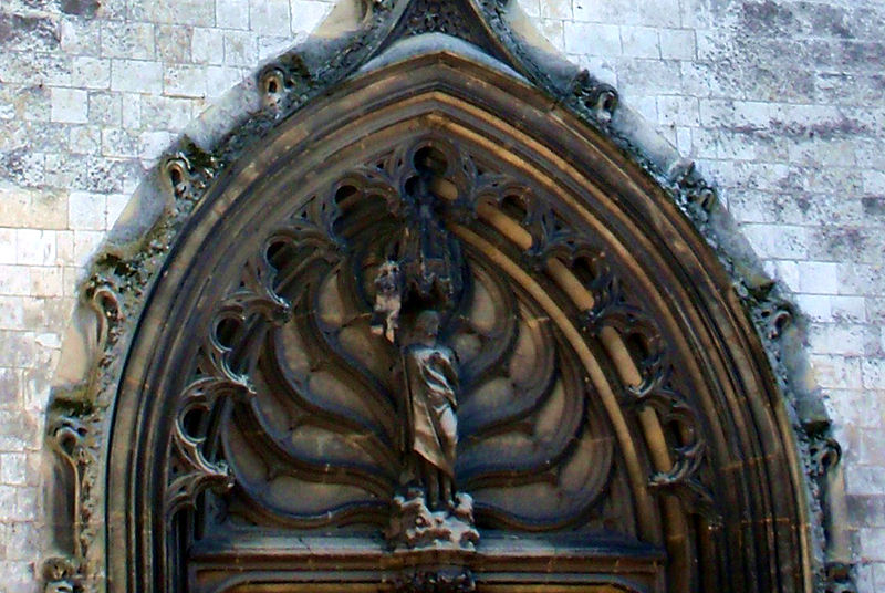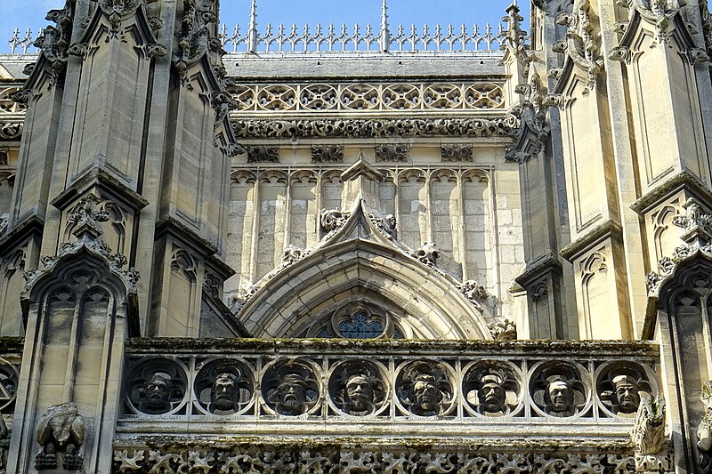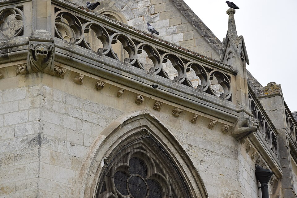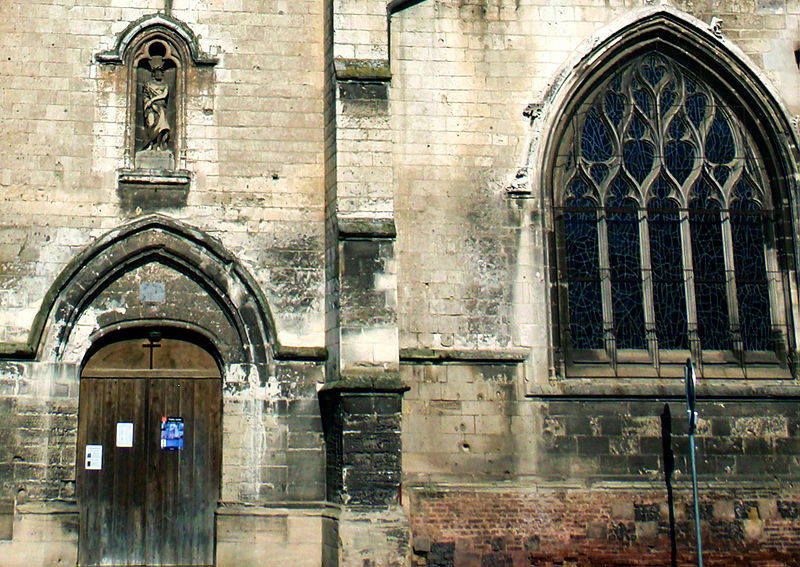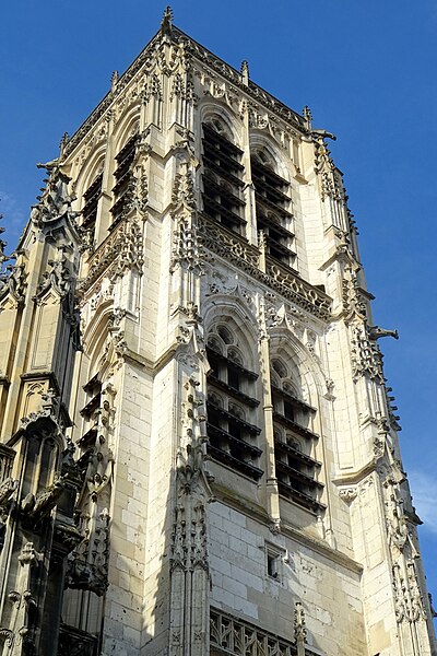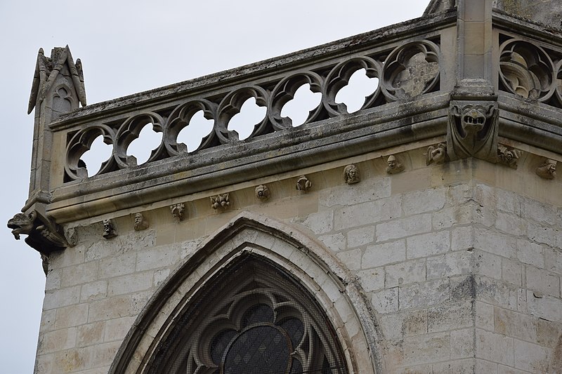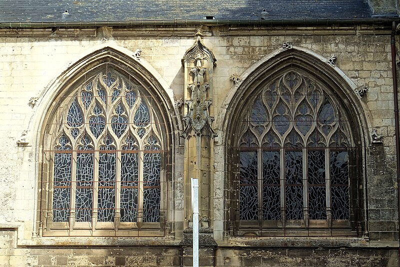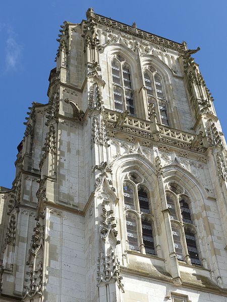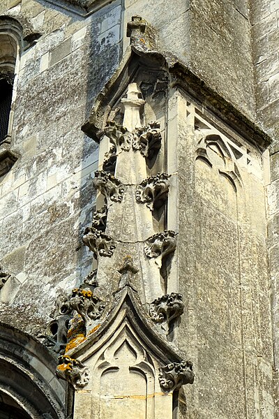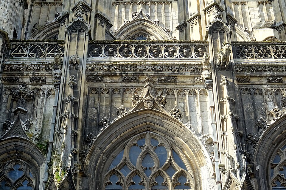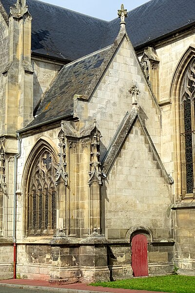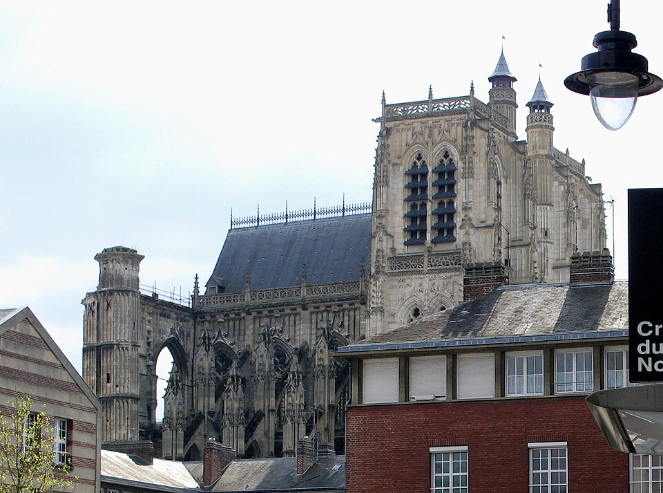 Les façades latérales sont renforcées par des piles et des arcs-boutants pour la première partie de la nef ; les murs ouest du transept, inachevés, conservent un décor flamboyant, alors que la partie orientale prolongée au XVIIe siècle et le chœur, renforcés par des contreforts, présentent un style plus sobre.