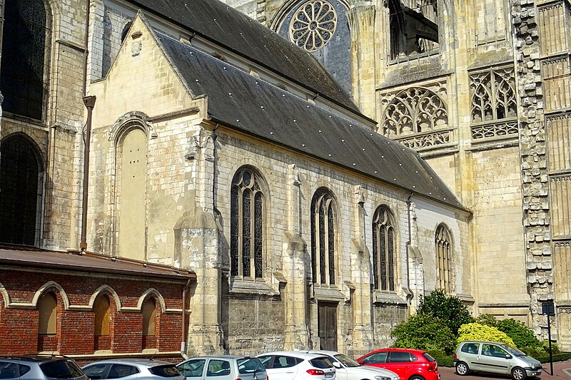 Chaque bas-côté comprend trois chapelles : dans le bas-côté sud se trouvent la chapelle Saint-Jean-Baptiste avec un retable du baptême de Jésus refait en 1849 par les frères Duthoit, la chapelle Saint-Yves-et-Sainte-Anne dont le retable du début du XVIe siècle est conservé au musée Boucher-de-Perthes et qui abrite des statues et un tableau du XVIIe siècle attribué à un élève de Guido Reni, et la chapelle Saint-Quiriace qui conserve un enfeu avec un Christ du XVIIIe siècle et des peintures murales Art déco de Victor-Ferdinand Bourgeois (1931), ainsi que des fonts baptismaux en marbre du XVIIIe siècle, une statue en bois de saint Jean-Baptiste du XVIe siècle et un tableau de Charles Gleyre. Dans le bas-côté nord, la chapelle Saint-Louis, fondée en 1492 par la famille d'Ailly, abrite un retable polychrome de la Nativité partiellement refait au XIXe siècle par les frères Duthoit et restauré en 1994 ; la chapelle Saints-Anges-et-Saint-Luc conserve un bas-relief du XVIe siècle et un retable du XIXe siècle des frères Duthoit, et la chapelle Saint-Firmin présente un tableau de Hermine Deheirain offert par Louis-Philippe en 1837.