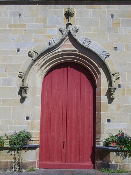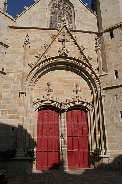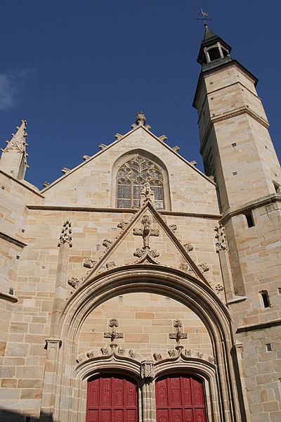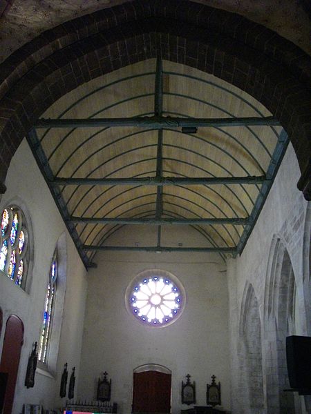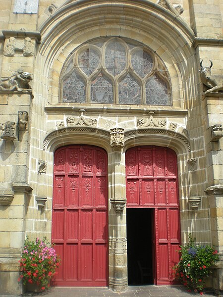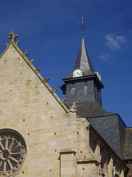 Le porche méridional, du XVe siècle, est percé de deux portes en anse de panier séparées par un mince pilier portant un dais et un culot ; ses vantaux sculptés du XVIe siècle sont classés. Entre les pignons des deux nefs s'élève une tourelle hexagonale dite « le Beffroi », qui participe à la silhouette caractéristique de l'église. Les deux nefs et l'abside nord sont couverts de charpentes à sablières et entraits sculptés ; la nef sud, de style gothique rayonnant, date du XVe siècle, tandis que la nef nord et son chœur, de style gothique flamboyant, appartiennent au XVIe siècle ; elles communiquent par de grandes arcades en tiers-point dont les voussures s'insèrent dans des piliers hexagonaux et s'éclairent par des fenêtres en tiers-point à remplage.