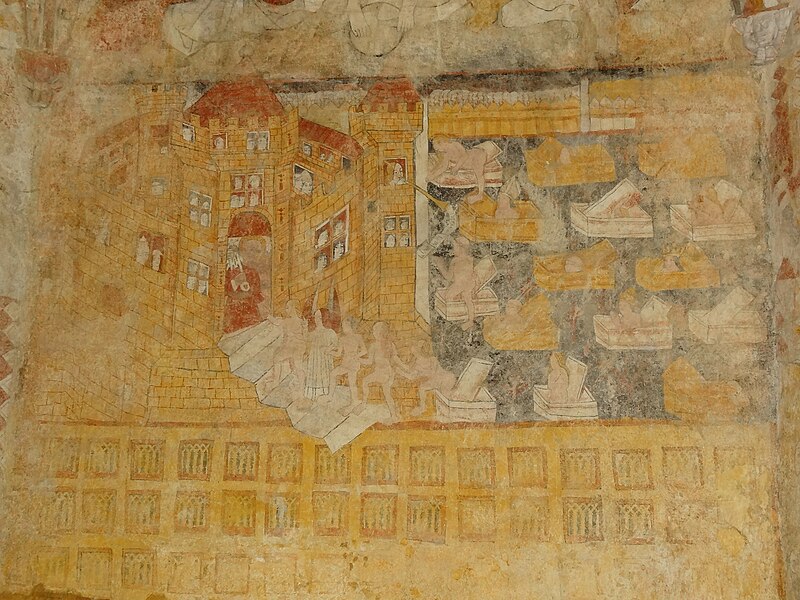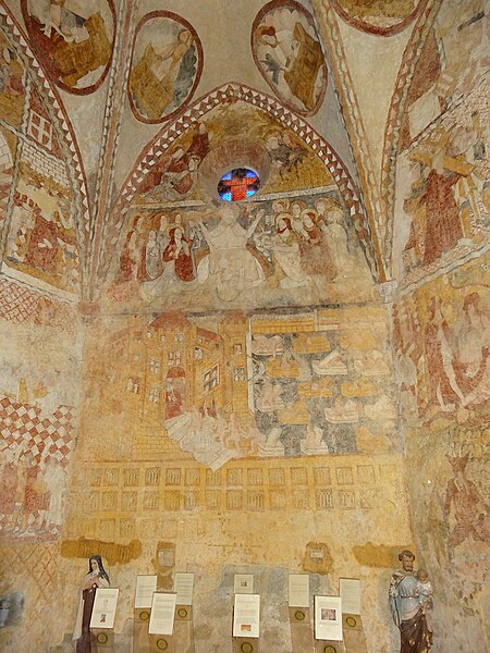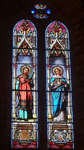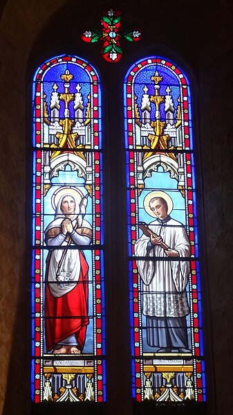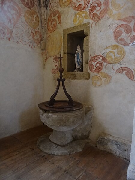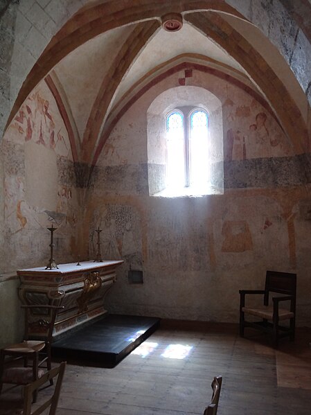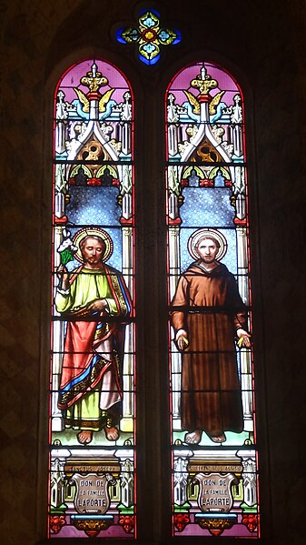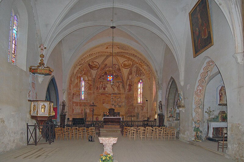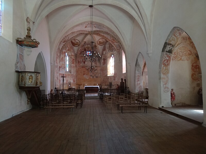 L'église Saint-Laurent de Mont-d'Astarac présente une nef unique flanquée de trois chapelles. Le chœur, à cinq pans, est orné de fresques du XVe siècle représentant l'arbre de Jessé, la Cène, divers épisodes de la vie du Christ et de sa Passion, ainsi que l'enfer ; sur le mur est figurent un Christ en majesté et la Résurrection des morts. L'édifice appartient, avec les églises de Seissan, Chêlan, Castelnau et Monléon, à une même famille architecturale de la Haute Vallée du Gers, édifiée à la fin du XVe ou au début du XVIe siècle. Ces églises se caractérisent par l'emploi de matériaux locaux — molasse, galets de rivière et brique —, par un chevet carré ou pentagonal, par des nefs larges bordées de chapelles latérales ou de collatéraux, par des voûtes basses ou écrasées et par un éclairage assuré par des fenêtres en arc plein cintre et un oculus percé dans le mur est. Les vitraux actuellement visibles datent de 1882. Les parties hautes de la tour-clocher ont été refaites en 1840. La nef a reçu une voûte sur croisées d'ogives entre 1850 et 1854. Le porche, postérieur à la campagne de construction principale, date de 1853 ; ses piliers d'angle portent chacun une sculpture qui pourrait provenir du porche primitif et semblerait être de la même main que celles du reste de l'édifice. L'espace servant aujourd'hui de sacristie, situé sur le flanc droit de la nef, date de 1886.