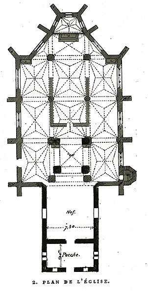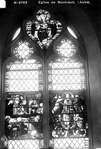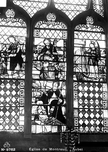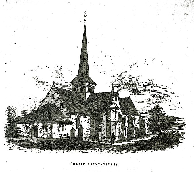 L'église Saint-Gilles est une église catholique située à Montreuil-sur-Barse, dans l'Aube. D'origine XIIe siècle, elle a été reconstruite au XVIe siècle selon un plan dit "Montiéramey" : un rectangle comprenant un porche et une nef qui s'ouvre sur le chœur par une travée en biais, conférant à l'édifice l'allure d'une église-halle. Entre 1868 et 1870, l'architecte Boulanger a mené d'importantes transformations : il a repris la charpente de la nef du XVIe siècle, démoli le deuxième mur pignon, restauré les deux autres ainsi que le parement en briques, refait tous les contreforts et renouvelé le remplage de la plupart des baies. Une sacristie a été construite en 1827. Au début du XXe siècle, le portail roman a été remplacé par une poutrelle métallique formant linteau soutenu par des jambages en briques, et, au cours du XXe siècle, les chapiteaux des baies du clocher ont été resculptés. Les vitraux du début du XVIe siècle sont encore visibles dans la nef. L'édifice a été classé au titre des monuments historiques en 2002. Le mobilier du XVIe siècle comprend notamment un Christ aux liens dont l'embase porte l'inscription "L'AN Vc XIX PHELIPPON CANTTY ET REINE SA FEMME ONT DONEZ CEST YMAGE", ainsi que des verrières représentant la Vie de la Vierge (Éducation, Mort, Assomption, Couronnement), saint Nicolas, saint Gilles, sainte Barbe et un Arbre de Jessé. Du XIIe siècle subsiste une peinture monumentale consacrée au Jugement dernier. La galerie d'images mentionne un plan, un carreau vernissé et des blasons — Claude de la Fille, Aliénor Germigny et Louis Devault — associés à Fichot.