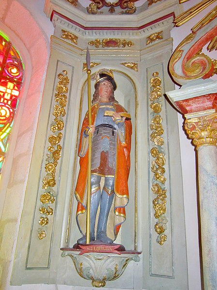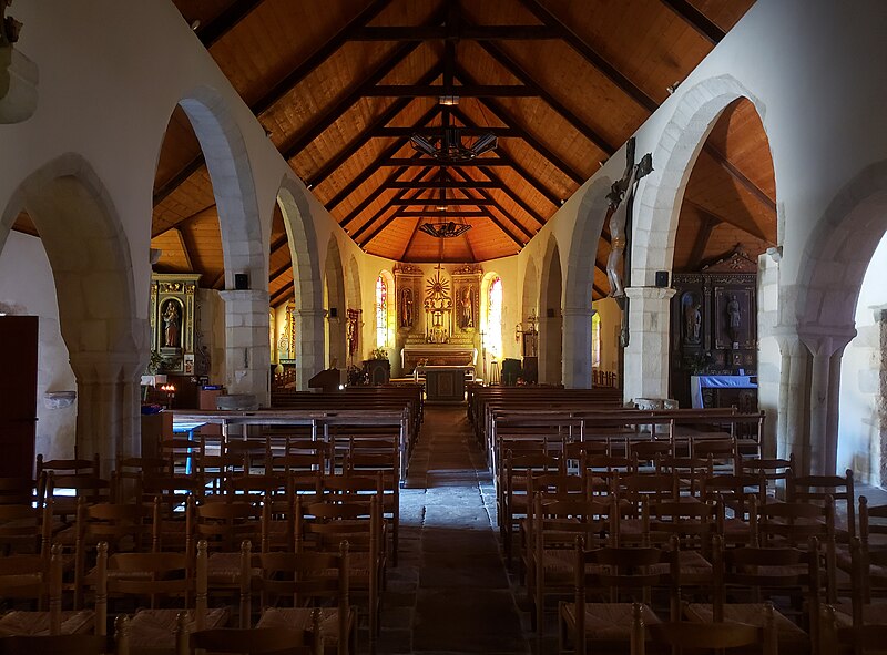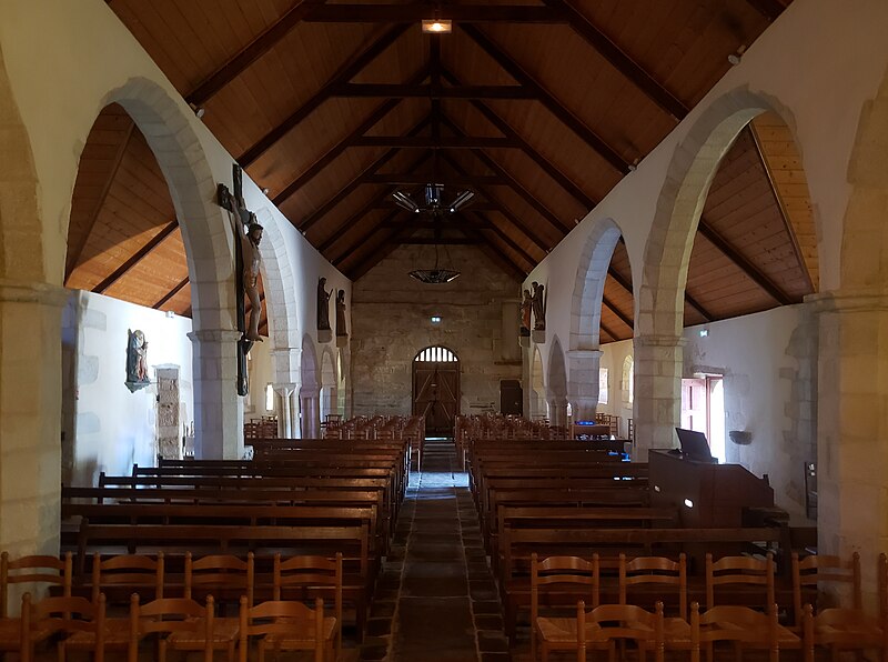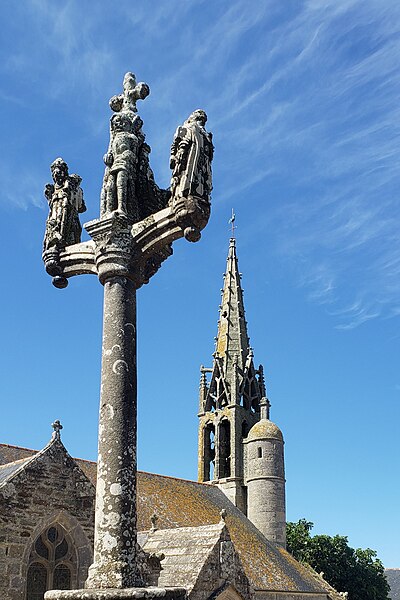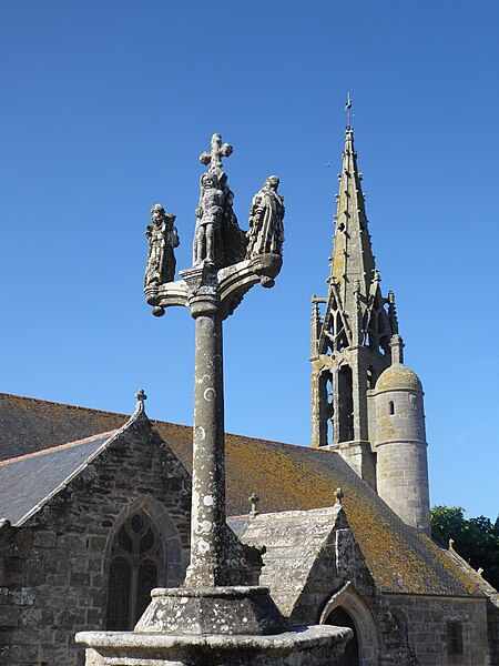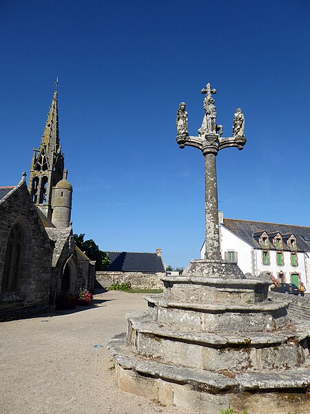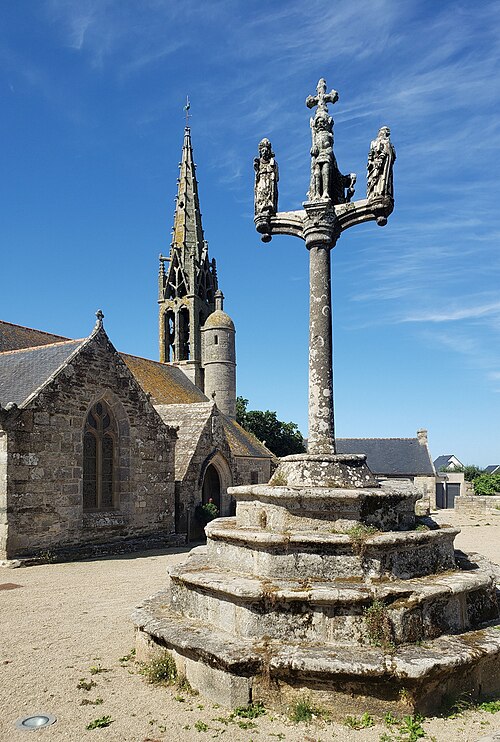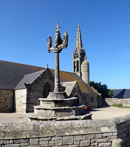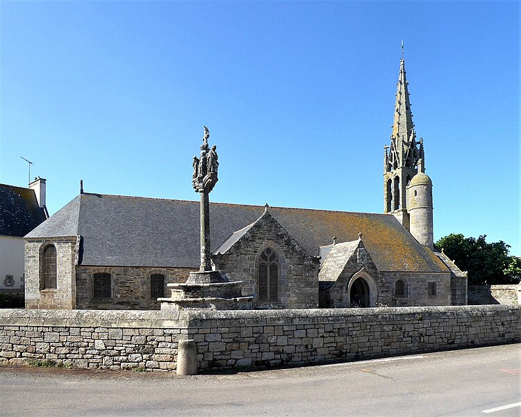 L'église Saint-Gorgon a connu une première campagne de construction au XIIIe siècle ; les piliers de la nef sont du type Pont-Croix. Le clocher remonte à près de 1520. Une reconstruction importante a été menée entre 1653 et 1660, suivie de reprises en 1791. Le calvaire, daté de 1703, porte l'inscription " 1703 M : P : PROVOST ". Au chevet figurent les inscriptions " 1653 I : LE GOUFF M : BARIOV : F " et " LE GALLES MG : P : F : D : ALANOU : F : M : KVAHV : O ". La charpente et les toitures ont été restaurées en 1976. Le site a été classé en 1936.