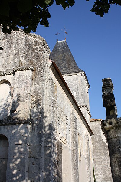 L'église Saint-Hilaire, située à Saint-Hilaire-du-Bois (Charente-Maritime, Nouvelle-Aquitaine), est mentionnée dès le XIe siècle et relevait soit du diocèse de Saintes, soit du prieur de l'hôpital de Pons. Son origine romane se lit dans la nef et dans la travée sous le clocher. Le chœur a été reconstruit au XIVe siècle et conserve des traces de peinture murale. La cloche, fondue en 1817 par J. Cornevin, a été bénite sous le nom de Marie. L'édifice est inscrit au titre des monuments historiques par arrêté du 5 décembre 2000. Des informations complémentaires sont disponibles dans les bases Mérimée, Clochers de France et l'Observatoire du patrimoine religieux, ainsi que sur des portails consacrés au catholicisme, à l'architecture chrétienne, à la Charente-Maritime et aux monuments historiques.