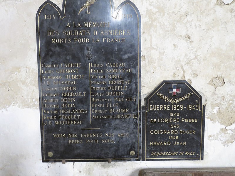 L'église Saint-Hilaire d'Asnières-sur-Vègre, dans la Sarthe, est traditionnellement considérée comme l'une des plus anciennes du Maine. Selon la tradition, elle aurait été fondée au IVe siècle par saint Thuribe, compagnon de saint Julien. Entre 623 et 654, un seigneur de Sablé fit don de la terre d'Asnières aux chanoines du Mans, qui achetèrent ensuite l'église à Salomon, fils de Geoffroy, en 1067-1068. La nef et le chœur datent de la seconde moitié du XIe siècle, tandis que le clocher remonte au XIIe siècle. Le chœur a été fortement remanié au XIVe siècle. Des peintures murales réalisées entre les XIIe et XVIe siècles ont été dégagées en 1951 ; elles représentent notamment des épisodes de la vie du Christ (la Présentation au Temple, l'Adoration des Mages) et de nombreuses scènes de l'enfer. Un lambris de chœur daté de 1781 a été détruit après inventaire. L'édifice et ses peintures murales sont classés au titre des monuments historiques depuis le 27 juillet 1979. Architectoniquement, l'église présente une nef romane rectangulaire percée de deux fenêtres de chaque côté ; la tour du clocher, qui servait de tour de guet, ne comporte pas d'accès extérieur.
