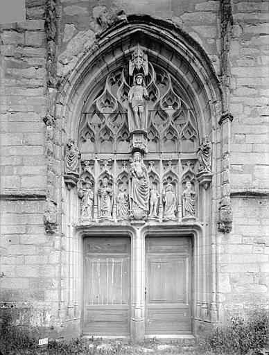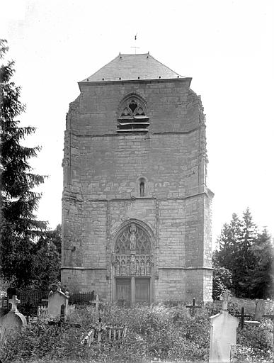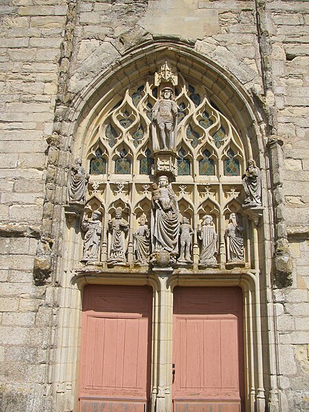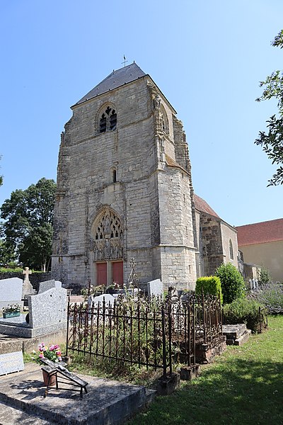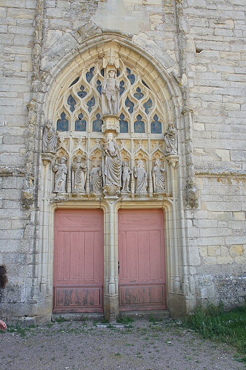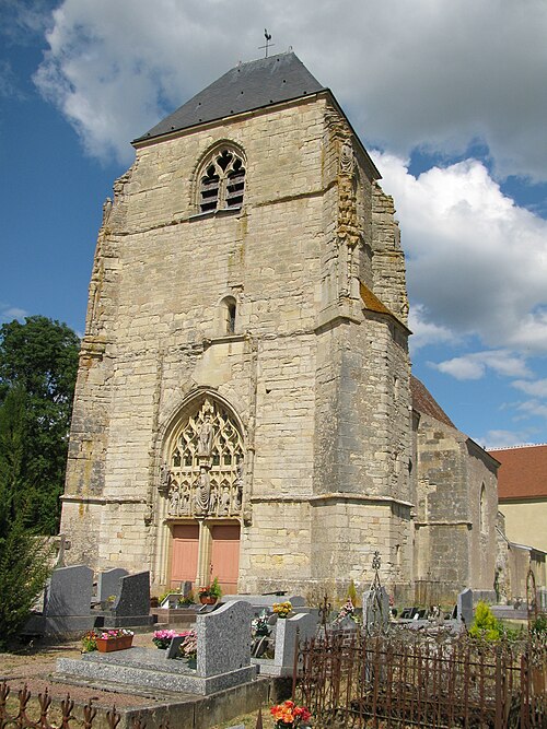 Édification de l'église actuelle avec un clocher-porche et un portail gothique.