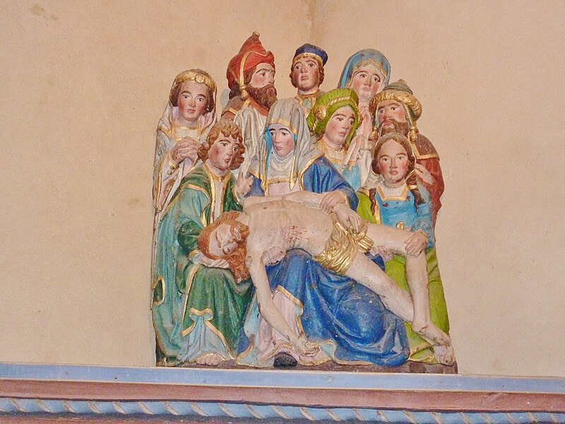 L'édifice comprend une nef flanquée de deux bas-côtés, un transept et un chevet plat à l'est. La partie orientale, la plus ancienne, présente des piliers octogonaux surmontés de chapiteaux à feuillages et paraît avoir été construite au début du XVe siècle. La partie occidentale, plus tardive, comporte de grandes arcades en tiers point et des piliers circulaires dépourvus de chapiteaux ; elle peut avoir été élevée un demi-siècle plus tard. La façade sud intègre un bâtiment qui comprend, au rez-de-chaussée, un porche et une sacristie voûtée en croisées d'ogives, et, à l'étage, un logis appelé « chambre du trésor ». On accède à cette chambre par un petit escalier à vis situé dans l'angle formé par ce bâtiment et le croisillon sud du transept. À l'extérieur de la tourelle, à la base de la toiture en pierre, se lit une frise sculptée. Au‑dessus de l'arcade qui précède le chœur s'élève un petit clocher ajouré, surmonté d'une flèche en pierre avec pinacles aux angles. Les baies du transept sont ornées de vitraux historiés du XVIe siècle.