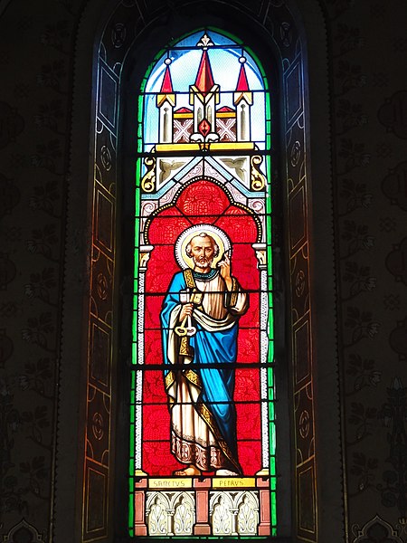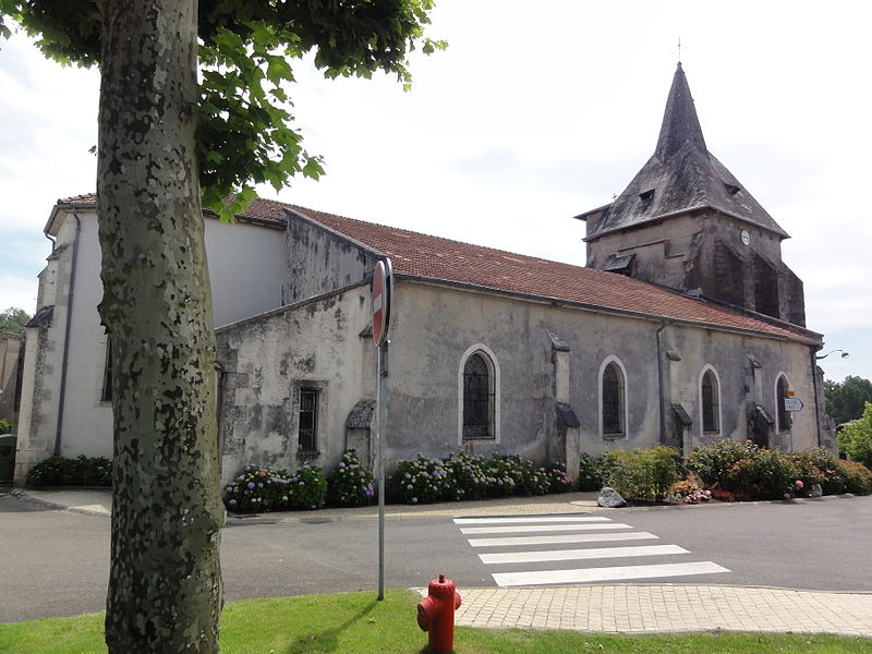 La nef s'ouvre sur deux bas-côtés couverts de voûtes d'ogives. L'abside forme un hémicycle pentagonal, porté par six petites colonnes dépourvues de chapiteaux. Le clocher-tour, massif et de plan carré, semble antérieur à l'église ; ses murs sont renforcés par de puissants contreforts. Sur les faces nord et sud, des mâchicoulis défendent respectivement un portail au nord et une baie haute au sud. Une tourelle d'escalier, rectangulaire jusqu'au sommet des contreforts puis à plan polygonal, dépasse le faîte du mur de la tour ; des meurtrières participent à sa défense. À l'intérieur, le bas de la tour forme un porche dont les arcs retombent sur quatre petits culots sculptés des symboles des quatre Évangélistes. L'édifice est signalé dès le XIIe siècle sous le vocable "Sanctus Petrus de Arrast" et a été entièrement rebâti au XVe siècle. Dans la seconde moitié du XIXe siècle, on a percé de nouvelles fenêtres dans les collatéraux et ouvert un petit portail sur le flanc nord du clocher.