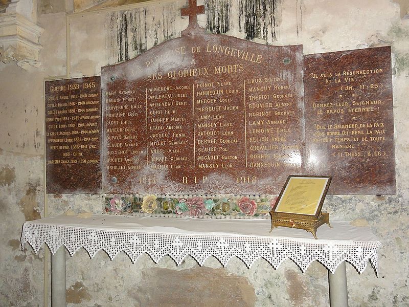 L'église Saint-Hilaire est une église catholique située à Longeville-en-Barrois, dans le département de la Meuse. L'édifice a été classé au titre des monuments historiques en 1990, en particulier pour son porche de style Renaissance dont le tympan peint abrite une statue de la Vierge aux raisins. L'intérieur comporte une chaire sculptée et une statue représentant le martyre de Saint Sébastien. On y trouve également un orgue de tribune classé, inauguré en 1903 et réalisé par Charles Didier-Van Caster, avec son buffet remarquable. La croisée du transept est surmontée d'un clocher muni d'une horloge et de cloches ; l'extérieur du clocher est orné d'une frise de roses et de têtes sculptées. Le chœur a fait l'objet d'une restauration en 1854. Plusieurs éléments notables sont présentés en images : la Vierge aux raisins, l'orgue et son buffet, l'autel consacré à Saint Sébastien et une statue de saint Christophe, protecteur des voyageurs.