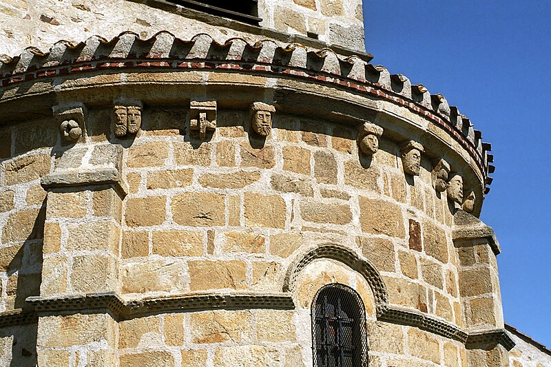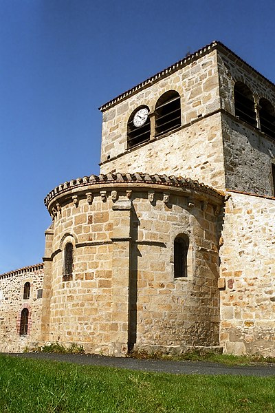 L'église Saint-Hilaire est un édifice roman situé à Saint-Hilaire, dans le département de la Haute-Loire (région Auvergne-Rhône-Alpes). Construite aux XIe et XIIe siècles, elle était un prieuré de la Chaise-Dieu et disposait en 1299 d'un droit de justice. L'intérieur de la nef et le clocher ont été transformés au XIXe siècle. L'édifice est inscrit au titre des monuments historiques depuis le 24 septembre 1987. La façade occidentale conserve des éléments architecturaux remarquables, notamment un arc de décharge en plein cintre à archivolte et un linteau en bâtière, aujourd'hui intégrés dans un porche contemporain. Le clocher est carré, court et trapu ; son dernier niveau est détaché de la partie inférieure par un cordon de pierre et percé sur chaque face de baies campanaires géminées munies d'abat-sons. À l'est, le chevet roman se compose d'une abside semi‑circulaire rythmée par de puissants contreforts amortis en bâtière qui prennent appui sur un soubassement élevé de quelques assises. L'abside est percée de trois fenêtres cintrées reliées par une frise en damier qui court sur toute sa surface. Elle est couronnée d'une corniche moulurée portée par des modillons sculptés alternant motifs géométriques et visages humains, dont un visage double. L'ensemble de l'édifice est couvert de tuiles orange.