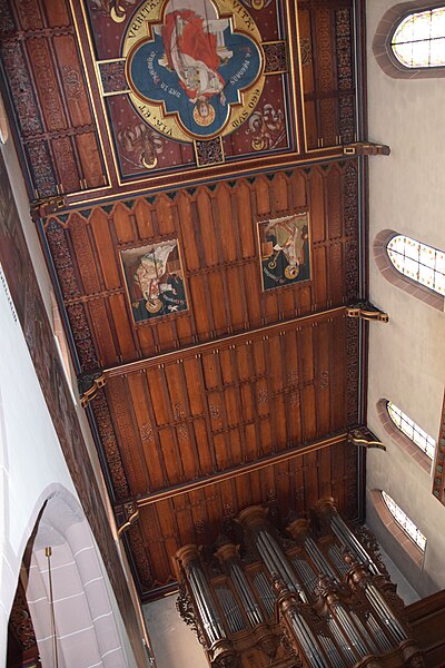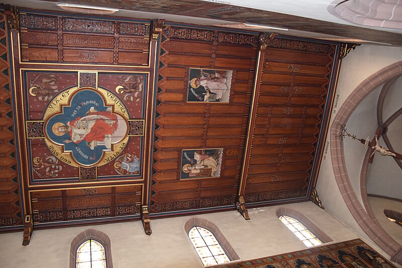 L'intérieur rassemble plusieurs éléments remarquables : le chœur abrite le maître‑autel contenant la châsse des reliques de saint Hippolyte et des lambris du XVIIIe siècle; la nef, la chaire à prêcher du XIXe siècle et un orgue de Jean André Silbermann initialement installé à l'abbaye de Marbach (1739) forment le cœur du mobilier liturgique. On y trouve aussi des fresques néo‑gothiques du XXe siècle représentant des saints et l'Adoration des Rois mages, un autel secondaire dédié à saint Wendelin et des tableaux du XVIIIe siècle.