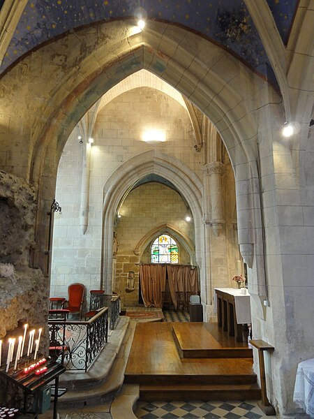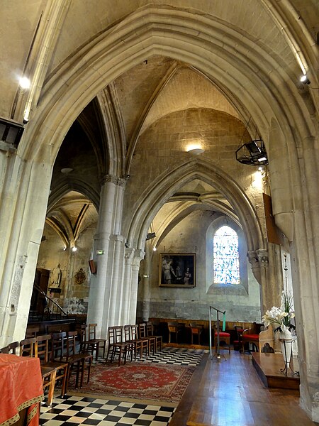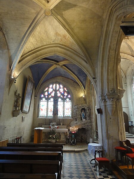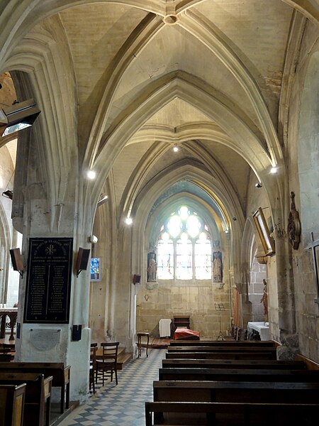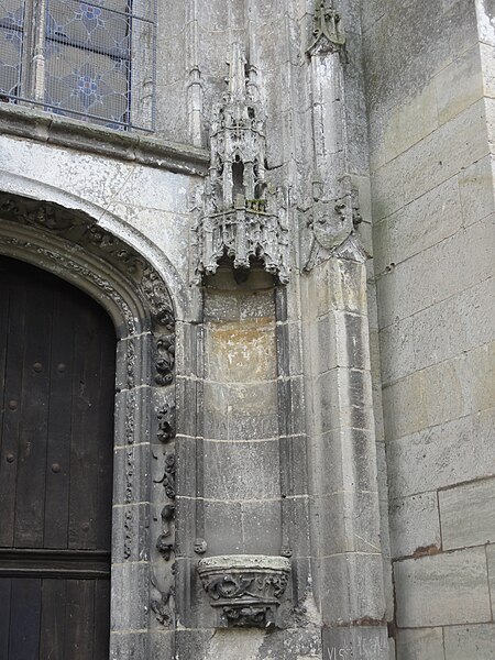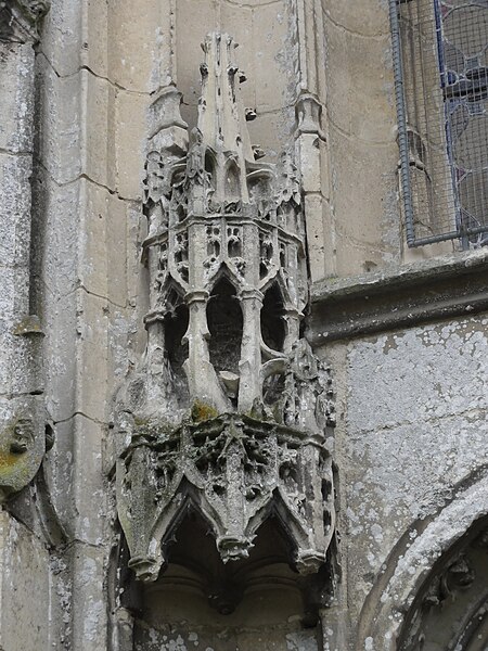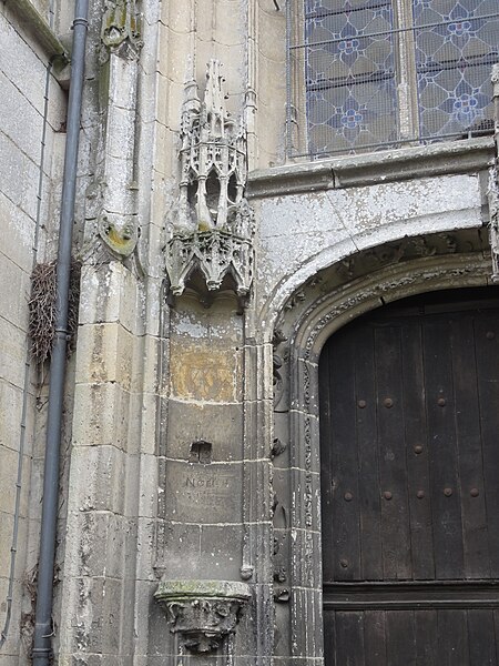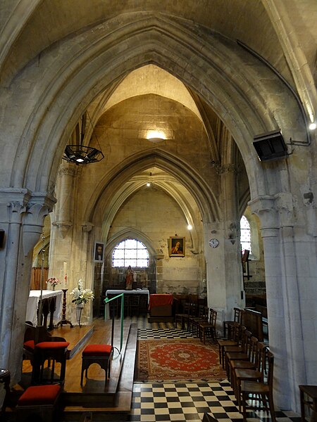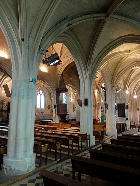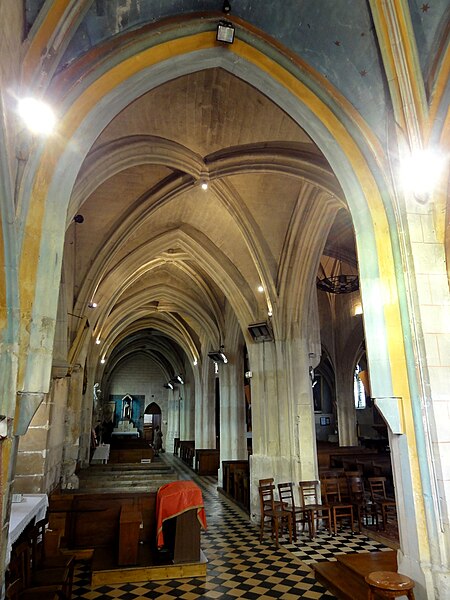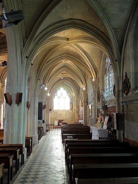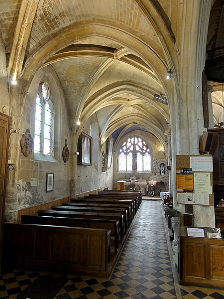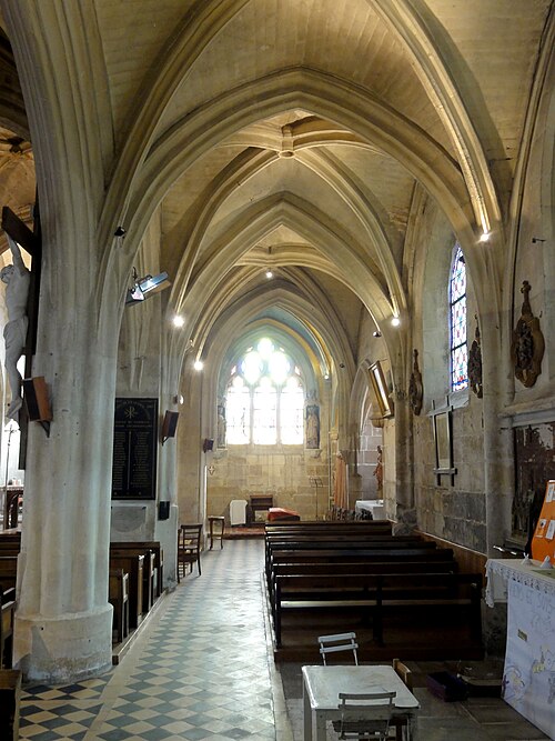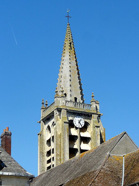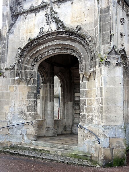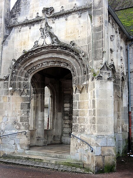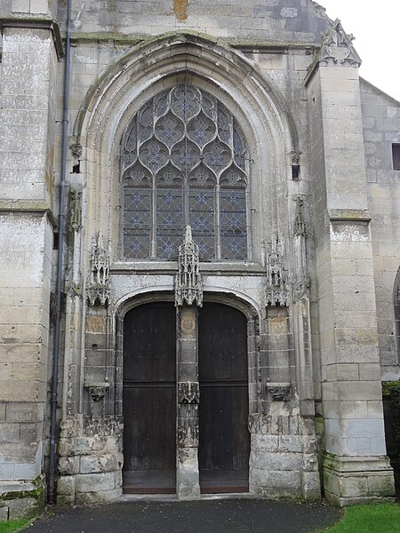 L'église Saint‑Honoré de Verneuil‑en‑Halatte, dans l'Oise (Hauts‑de‑France), est une église paroissiale catholique dont les origines remontent à la fin du XIe siècle. En 1104 elle est donnée à l'abbaye de Molesme qui y fonde un prieuré‑cure bénédictin placé sous l'invocation de sainte Geneviève, tandis que la paroisse relève de saint Honoré. Le chœur roman, probablement édifié par l'abbaye au cours du XIIe siècle, comportait un clocher octogonal au‑dessus de la première travée dont ne subsiste aujourd'hui que la souche. Vers 1170 sont ajoutées au nord et au sud des chapelles en style gothique primitif, dont restent notamment une large arcade avec chapiteaux et un mur percé d'une fenêtre. Au XVe siècle le clocher s'effondre et les arcades endommagées sont rebâties dans un gothique flamboyant naissant, puis, du dernier quart du XVe siècle au début du XVIe siècle, l'essentiel de l'édifice ancien est reconstruit. La nef et ses bas‑côtés, issus de cette campagne, illustrent un flamboyant particulièrement pur ; les parties orientales sont plus simples mais agrémentées de culs‑de‑lampe sculptés. Le nouveau clocher n'est achevé qu'après la période gothique — sans doute après 1600 — et sa flèche en pierre s'inscrit néanmoins dans la tradition gothique. À l'extérieur, le portail occidental et le porche richement décoré, côté place du marché au nord, sont parmi les éléments les plus remarquables de l'ensemble. L'église, inscrite aux monuments historiques le 3 novembre 1927, a fait l'objet de restaurations conduites par la commune, notamment dans les années 1980. Implantée au cœur du bourg, près de la forêt d'Halatte et du Parc naturel régional Oise‑Pays de France, elle occupe la place du marché ; le portail principal se trouve sous le porche nord et la façade occidentale est précédée d'un petit parvis engazonné. Le plan est globalement rectangulaire et comprend trois vaisseaux parallèles : le vaisseau central compte huit travées, les collatéraux sept (six hors leurs premières travées réservées à la base du clocher et à la sacristie). La première travée du vaisseau central sert de narthex et de salle de catéchisme et porte une tribune ; les deux dernières travées constituent le chœur et le sanctuaire tandis que les collatéraux forment des chapelles latérales. L'édifice, voûté d'ogives, présente plusieurs irrégularités liées aux reconstructions successives, notamment une travée de transition de hauteur différente et des murs méridionaux épaissis accueillant des enfeus. La nef, largement aveugle, n'est éclairée directement que par la grande baie occidentale à remplage flamboyant ; l'essentiel de la lumière provient des bas‑côtés et du chœur. Les voûtes de la nef et des bas‑côtés, agrémentées de liernes et de profils prismatiques, s'harmonisent avec le langage flamboyant, tandis que des éléments romans de 1170 subsistent dans la base de l'ancien clocher et dans plusieurs chapiteaux. La chapelle latérale nord conserve une baie primitive de la campagne de 1170 et des clés de voûte sculptées ; la chapelle sud, vraisemblablement chapelle seigneuriale, comporte deux enfeus liés aux seigneurs de Verneuil et des culs‑de‑lampe armoriés. Le porche nord, en pierre taillée, illustre le style flamboyant par son voûtement à liernes et tiercerons, ses accolades sculptées et ses pinacles, et le portail occidental, en anse de panier, associe trumeau, niches et décors de rinceaux. Le clocher, adossé à la première travée du bas‑côté nord, comprend des étages aveugles, un beffroi ajouré par des baies abat‑sons géminées, une tourelle d'escalier et une flèche octogonale en pierre ornée de crochets ; la girouette culmine à 41,00 m au‑dessus du sol. L'édifice a connu plusieurs campagnes de restauration et de consolidation aux XIXe et XXe siècles : le chœur a été restauré en 1894, le clocher a été endommagé à la Libération par un obus, et des travaux de sauvegarde étendus ont été conduits entre les années 1960 et 1988. Le mobilier comprend trois objets classés au titre des monuments historiques — une cuve baptismale du XVIe siècle, un tableau de l'Annonciation de Bernardo Castello daté de 1624 et une Sainte Famille attribuée à Simon Vouet ou son entourage — ainsi que d'autres œuvres d'intérêt, notamment un petit saint Pierre d'après Guido Reni, un tableau de saint Louis offert par la ville de Paris en 1829, une chaire du XIXe siècle incorporant des panneaux du XVIIe siècle et plusieurs dalles funéraires scellées dans le narthex. Bien entretenue, l'église Saint‑Honoré demeure un lieu de culte actif et un repère patrimonial du bourg de Verneuil‑en‑Halatte.