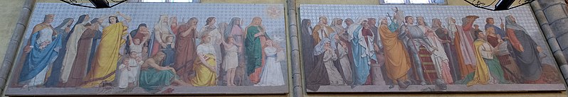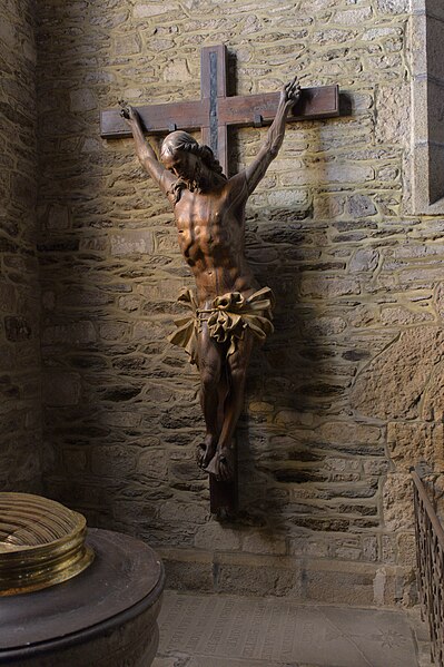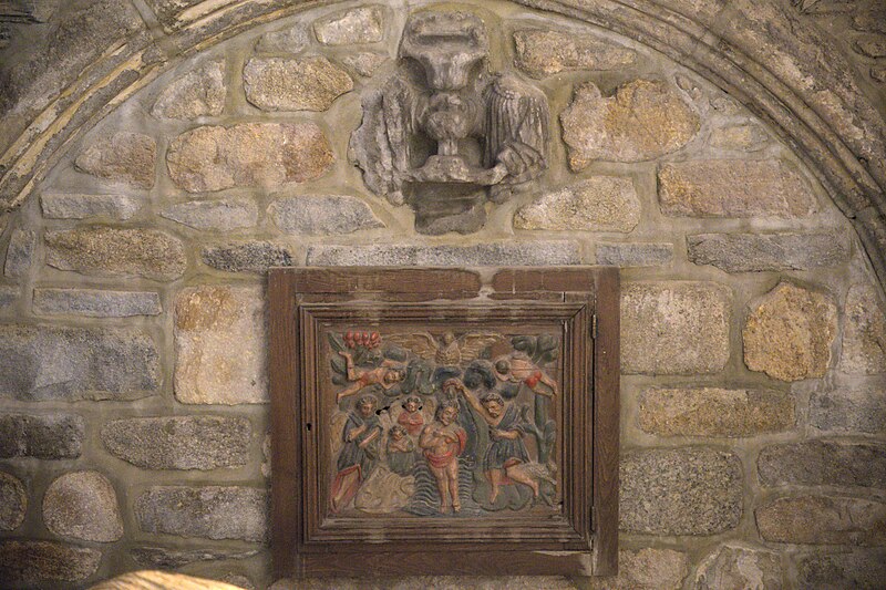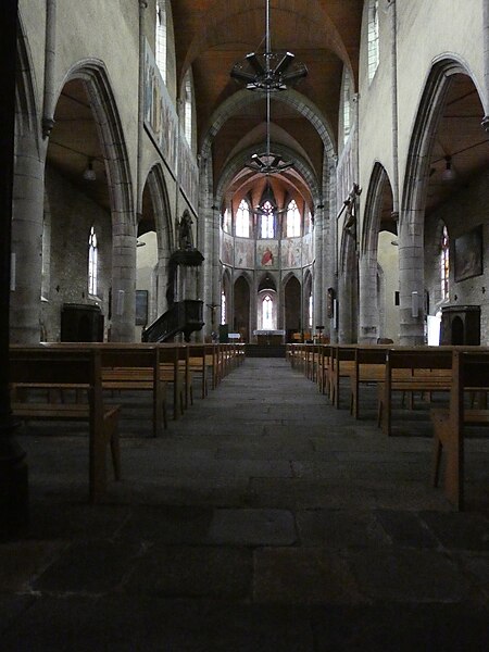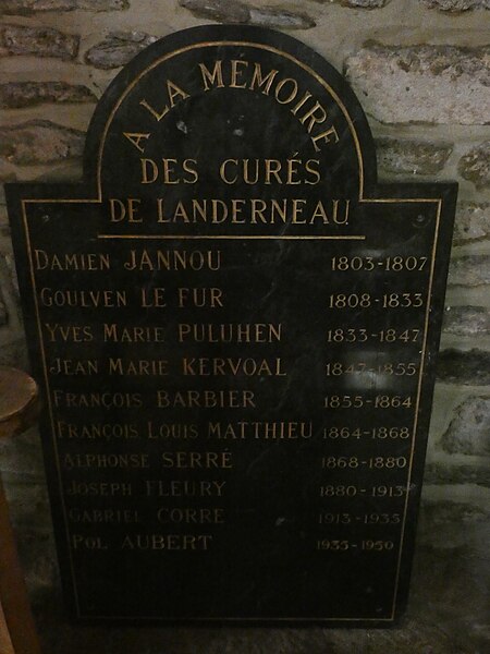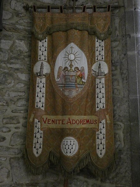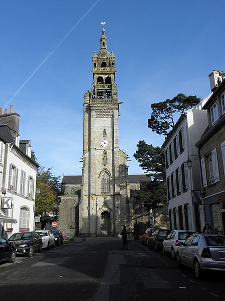 Dans le chœur se trouve une fresque de Yan' Dargent intitulée Cortège des saints personnages convergeant vers le Christ glorieux (1891-1893), ainsi qu'un grand tableau représentant saint Houardon voguant dans une auge de pierre, saint particulièrement prié par les marins. Un plan de l'église datant de 1779 et plusieurs vues anciennes et récentes de la façade et du clocher figurent parmi les documents et représentations connus de l'édifice.