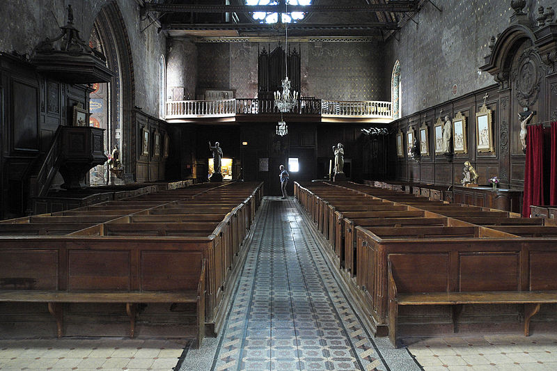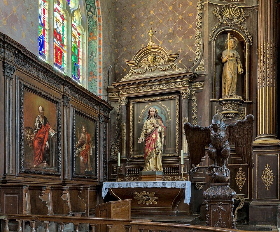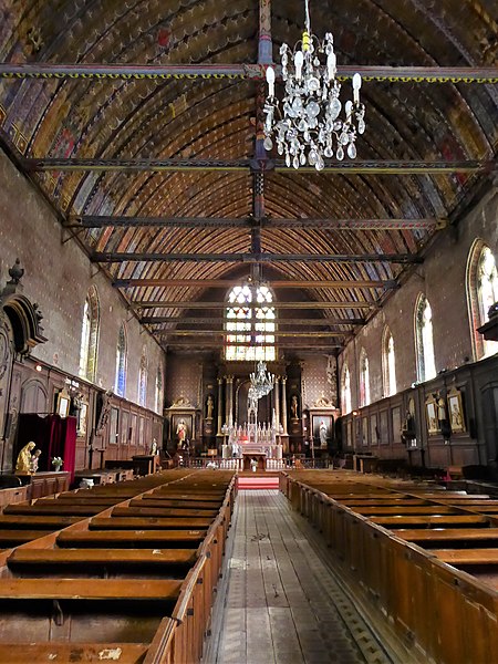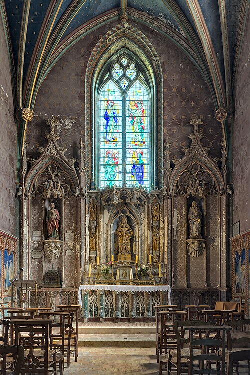 L'église Saint‑Jacques est une église catholique située à Illiers‑Combray, en Eure‑et‑Loir, en région Centre‑Val de Loire. L'édifice actuel a été reconstruit après la guerre de Cent Ans ; le chœur, prolongement de la nef romane, a été achevé en 1453. L'achèvement de l'église intervient en 1497 avec l'édification du clocher et des travées jusqu'à la façade occidentale. Au nord subsistent des vestiges de l'édifice antérieur, probablement du XIe siècle, comprenant une porte romane et deux baies. Le portail occidental, de style gothique international, a été remanié à une date inconnue, sans doute après des destructions liées aux guerres de religion. Des restaurations sont attestées au XVIe siècle et une restauration complète accompagnée d'une redécoration a eu lieu au XIXe siècle, avec une intervention datée en 1895. Entre 1909 et 1911, les maisons accolées au nord et à l'ouest furent supprimées pour créer la Grande Place. L'édifice est classé au titre des monuments historiques depuis 1907. La voûte en bardeaux de bois et la charpente sont entièrement peintes ; le vitrail principal du chœur date de 1867 et sa baie a été restaurée en 2021 par les Ateliers Lorin de Chartres. Des traces de couleurs dans la chapelle de la Vierge témoignent de peintures murales de l'église gothique. L'église possède un mobilier riche principalement daté des XVe, XVIe et XVIIe siècles, et l'ensemble du chœur est classé au titre des monuments historiques. Sont classés le maître‑autel, le tabernacle et le retable à pinacles, clochetons et dais, ainsi que l'ensemble du retable du maître‑autel avec les statues de saint Jean‑Baptiste et de saint Jacques et le tableau représentant Marie Salomé demandant au Christ une place pour ses fils. Les deux retables latéraux et leurs autels du XVIIe siècle sont également protégés. Quatorze tableaux et leurs cadres, représentant les quatre évangélistes et des scènes du Nouveau Testament, sont classés ; les évangélistes peints à l'huile sont l'œuvre de Dumets au XIXe siècle, d'après Valentin de Boulogne. Parmi les autres éléments intérieurs figurent un bas‑relief représentant la Cène, une Vierge noire, des statues de saint André et de saint Pierre, des chapelles latérales et un bénitier dans la nef. On remarque aussi une tête sculptée de saint Jacques, modèle de celle de la tour Saint‑Jean à Paris, ainsi que L'Annonciation par Dumets et Le Baptême du Christ (17e‑18e siècles). L'église Saint‑Jacques dépend de la paroisse Notre‑Dame du Combray et du doyenné du Perche.