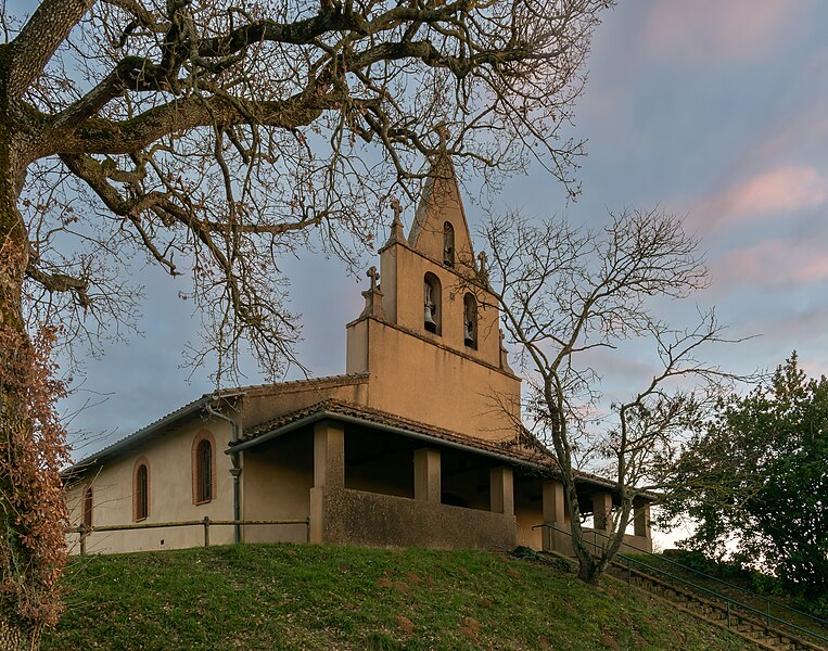 L'église et le château paraissent avoir été édifiés à la même époque et forment un ensemble typique de la Gascogne toulousaine du XVIIIe siècle. L'église a probablement servi de chapelle castrale. Le clocher-mur est daté de 1759.
