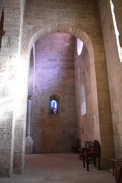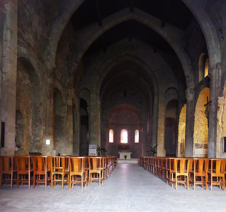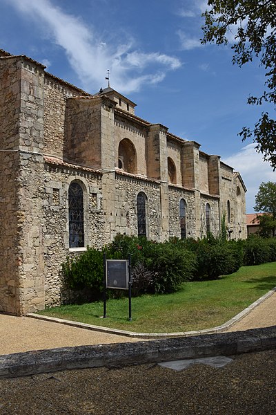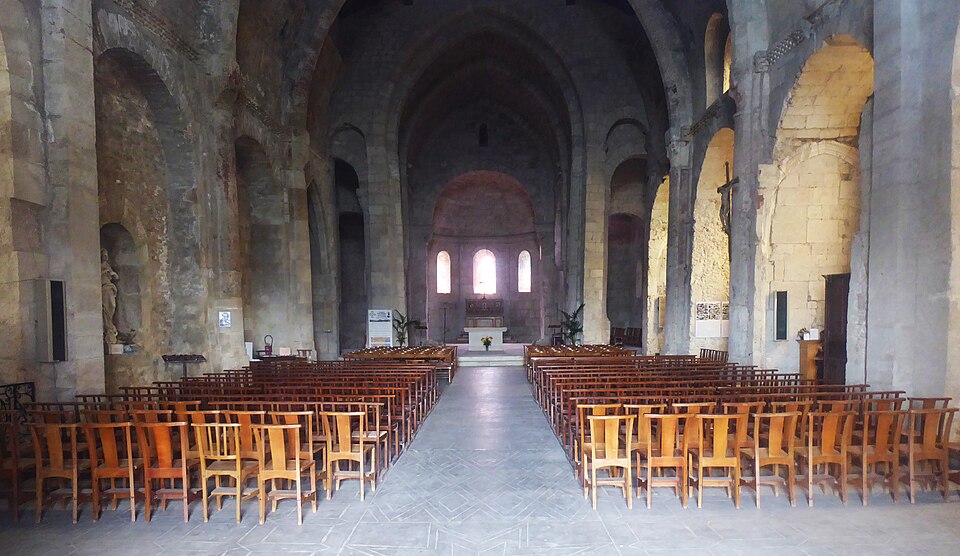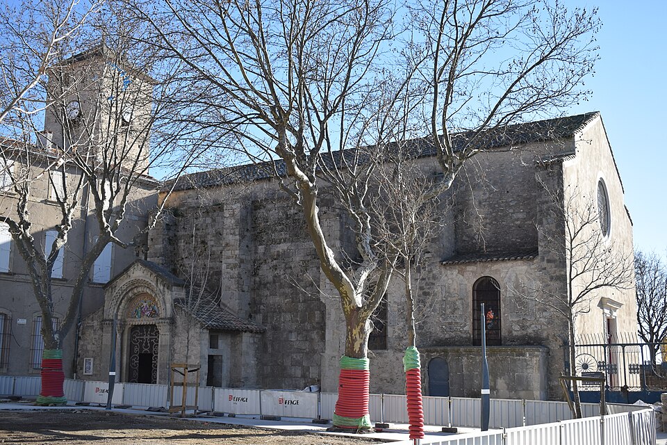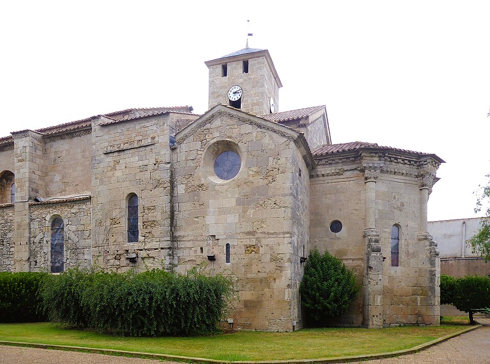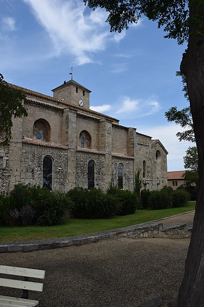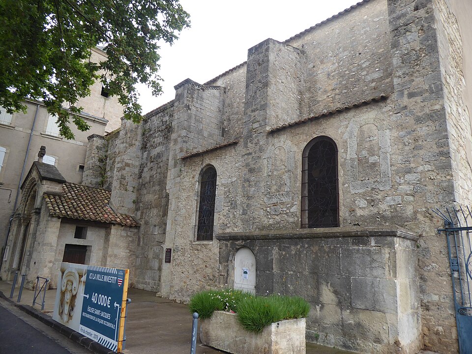 L'église Saint-Jacques, ancienne abbatiale de l'ordre de Saint-Augustin, se dresse à Béziers (Hérault) à l'extrémité sud de la colline biterroise, hors des anciens remparts mais à leur proximité. Le premier abbé connu est mentionné dans les sources autour de 907-908 sous les noms d'Aymeric ou Aimeri. Parmi ses prélats, Arnaud de Levezou accéda au siège épiscopal de Béziers en 1096, puis à l'archevêché de Narbonne ; sa brillante destinée, liée à la protection du comte Alphonse, a été mise en relation avec la construction d'au moins une partie de l'édifice roman. L'église fut une étape importante pour les pèlerins de Saint-Jacques-de-Compostelle et figure parmi les plus anciennes de la ville. Appelée autrefois Saint-Jacques-Saint-Michel, elle abritait l'abbaye Saint-Geneviève ; le vicomte Raymond II y fut inhumé en 969. Après la suppression de l'abbaye en 1790, l'édifice devint une paroisse. L'abbaye connut de nombreuses transformations : à la fin du Moyen Âge elle était à moitié ruinée, et au XVe siècle on ajouta notamment les chapelles de Saint-Joseph et Sainte-Marguerite ainsi que des baies ogivales du côté de l'épître. En 1664 fut introduite la réforme de la congrégation de France, remplaçant les cénobites par des chanoines réguliers de Sainte-Geneviève. Le XVIIIe siècle apporta des modifications importantes, avec la construction de deux chapelles, l'édification d'une voûte en briques sur la nef (1772) et l'aménagement des supports et arcades dans un goût classique. Sous la Révolution et l'Empire, l'édifice servit d'atelier de fabrication de baïonnettes. En 1828 la nef fut allongée à l'emplacement de l'ancien cimetière. Un incendie de l'orgue en août 1960 entraîna des travaux qui mirent au jour colonnes et chapiteaux d'inspiration romane, ainsi que des charpentes et des peintures murales masquées par les interventions de 1772 ; la charpente conserve plusieurs pièces et corbeaux sculptés et peints probablement des XIVe et XVe siècles. L'édifice a une nef unique de cinq travées, bordée de chapelles et prolongée par deux travées de chœur et d'avant-chœur à collatéraux ; le sanctuaire présente une abside pentagonale et un clocher carré se situe au nord du chœur. Le chevet pentagonal, en pierres de taille, repose sur un soubassement important de sept assises et ses pans sont séparés par de courtes colonnes ; la décoration s'inspire de l'antique avec colonnes, chapiteaux à feuilles d'acanthe, entablement, frise d'oves et modillons ornés. Le tympan en terre cuite émaillée, représentant le Jugement dernier, porte la signature de Gaston Virebent et la date de 1862, sans doute liée à la fin des travaux d'agrandissement. L'abside fait l'objet d'un classement au titre des monuments historiques depuis le 3 septembre 1912 et une partie de la nef est classée depuis le 13 mars 1967. Depuis la terrasse de l'église on domine le faubourg, l'Orb et ses ponts, la plaine Saint-Pierre et, par temps clair, l'horizon jusqu'aux Pyrénées. Certaines ornements permettent encore d'apercevoir des traces de l'origine carolingienne de l'édifice.