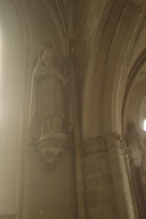 L'église Saint-Jacques de Montebourg est un édifice catholique situé au centre-ville de Montebourg, dans le département de la Manche en Normandie. Construite en une décennie grâce à la générosité de l'abbé Pierre Ozenne (1318-1329), elle présente une architecture homogène en pur style gothique. Elle a été consacrée par Guillaume de Thieuville, évêque de Coutances, le 2 septembre 1329. Le chœur repose sur une ancienne chapelle du XIe siècle également dédiée à saint Jacques. La fin du XIXe siècle a entraîné une première modification lorsque le cimetière a été déplacé : la nef a été affectée, les contreforts côté sud renforcés et le toit de la nef transformé. Comme la ville, l'église a subi de graves dommages lors de la bataille de juin 1944, le clocher ayant été visé par la marine américaine car il servait d'observatoire aux Allemands. Le rapide achèvement de l'édifice explique son unité stylistique ; la plupart des chapiteaux sont sculptés de feuilles de chou et de marronnier, à l'exception d'un exemplaire plus ancien orné d'un lièvre et de personnages. L'église présente une nef et un chœur aveugle, tous deux à pignons droits. Son clocher central carré, pourvu d'une balustrade, fut rehaussé au XVe siècle d'une flèche octogonale et reconstruit après 1944. Les piles ont un noyau cylindrique flanqué de quatre colonnettes rondes, caractéristique du XIVe siècle. Le portail occidental, bâti vers 1330, s'inspire de la porte occidentale de l'église de Sainte-Mère-Église tout en ajoutant des arcatures latérales aveugles évoquant certaines églises romanes de Saintonge. Le clocher, premier de ce type dans le Plain, présente une tour carrée dont les deux tiers de la hauteur sont occupés par deux grandes baies géminées séparées par des faisceaux de colonnettes et encadrées de deux arcades aveugles de même forme. La tour est surmontée d'une balustrade ajourée de quadrilobes et de petits pinacles aux angles, et la flèche octogonale, dont la base est pourvue de quatre hauts clochetons ajourés, a ses pans percés de polylobes et ses arêtes adoucies par un tore. L'édifice est inscrit au titre des monuments historiques par l'arrêté du 18 mai 1925. Parmi le mobilier figurent une statue en albâtre anglais du XVe siècle représentant saint Jacques apôtre, offerte par l'évêque Le Nordez et classée au titre des objets, des fonts baptismaux du début du XIIe siècle à décor normand sur deux niveaux avec entrelacs et têtes humaines, des statues de saint Jacques le Majeur en pèlerin du XIVe siècle et une verrière du XXe siècle réalisée par Pierre Potet.