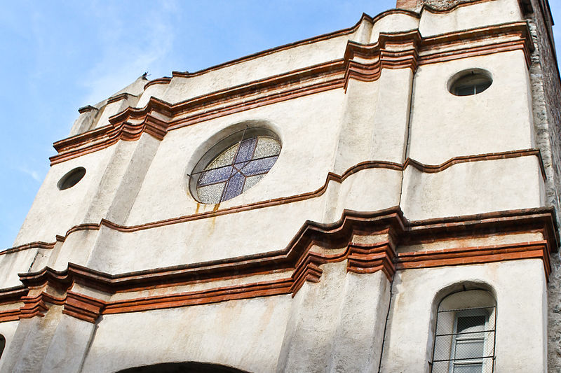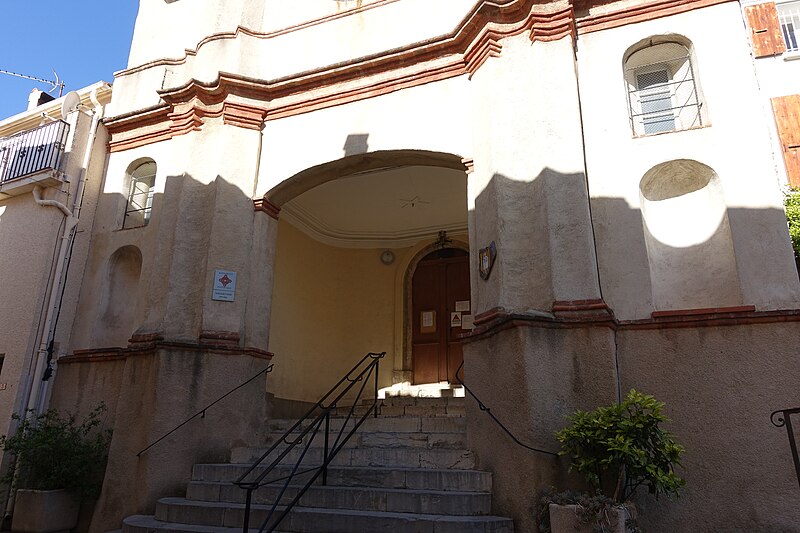 La première mention de l'église remonte au XVe siècle, mais l'édifice actuel date du XVIIe siècle et réutilise probablement des matériaux de la construction médiévale. La façade et le porche semblent appartenir à une seconde campagne de travaux, leur ordonnance et leur ampleur témoignant d'un souci de monumentalité empreint d'un certain esprit baroque. La nef unique, composée de trois travées bordées de chapelles latérales, et le chœur quadrangulaire sont voûtés en berceau.