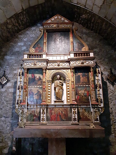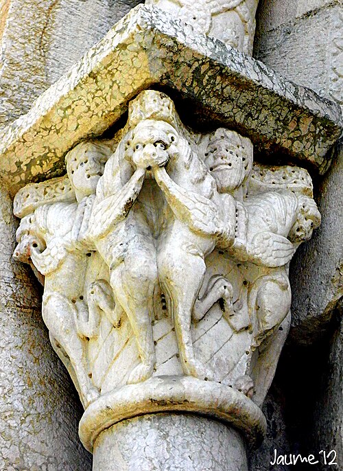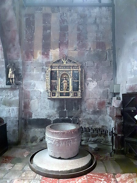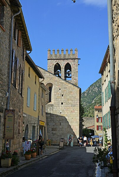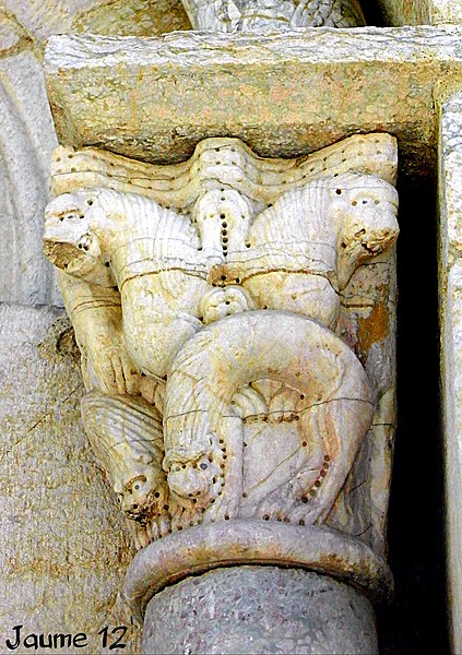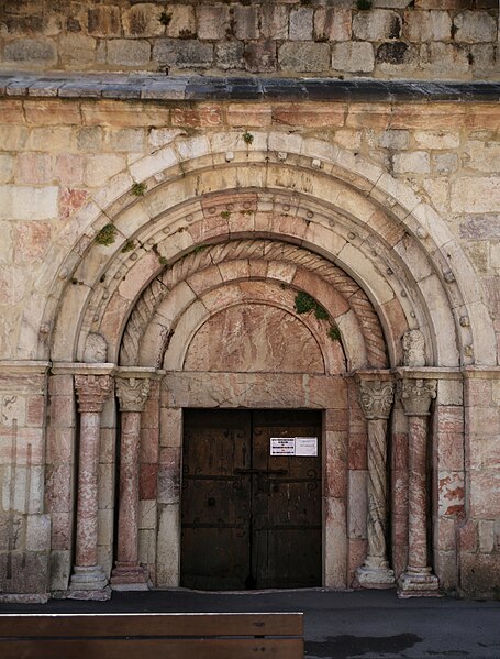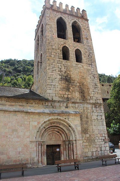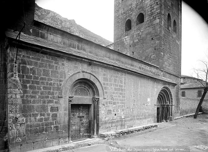 L'église Saint-Jacques de Villefranche-de-Conflent se situe dans les Pyrénées-Orientales, à l'angle sud-ouest de la ville fortifiée, accolée à la courtine sud. Sa configuration actuelle remonte au XIIe siècle ; elle a été agrandie à l'époque gothique puis remaniée par Vauban lors des travaux de renforcement de la place‑forte. Dès la fondation de la ville, l'évêque d'Elne a autorisé les habitants à édifier une église. La partie la plus ancienne est la nef septentrionale, datée du début du XIIe siècle ; dans la seconde moitié de ce siècle, un vaisseau plus vaste a été ajouté au sud pour répondre à l'accroissement de la population. Au XIIIe siècle, l'édifice a été remanié : il a été prolongé vers l'est avec la création de l'actuel chevet plat, des chapelles latérales et le clocher actuel implanté à l'angle nord‑ouest. À la fin du XVIIe siècle, le remodelage des fortifications a profondément modifié les abords de l'église : le cloître qui la flanquait à l'ouest a été rasé, ne laissant que les rangées de corbeaux qui soutenaient la charpente des galeries. Le portail occidental a été supprimé ; son encadrement en marbre rose, composé de deux colonnes chacune surmontée de chapiteaux sculptés apparentés à la sculpture du cloître et de la tribune de Serrabone et supportant une voussure sculptée, a été transféré sur le mur septentrional, à gauche de l'entrée d'origine ; ces sculptures sont datées du milieu du XIIe siècle. Sous la tour‑clocher, à l'angle nord‑ouest, se trouve le portail primitif, lui aussi en marbre rose : il est encadré par quatre colonnes, dont les chapiteaux extérieurs portent des feuillages et les chapiteaux intérieurs des lions et des singes. Ces colonnes supportent des voussures ornées — tore en spirale, têtes humaines et animales — qui encadrent le tympan et le linteau ; cette ornementation est comparable à celle du cloître de l'abbaye Saint‑Michel de Cuxa. L'édifice est classé au titre des monuments historiques en 1862.