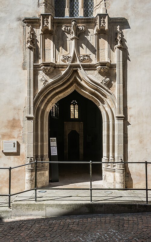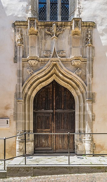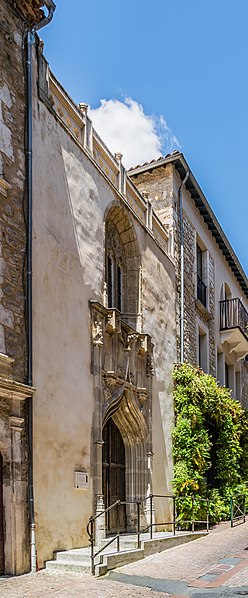 L'ancienne église Saint-Jacques est un édifice gothique construit en 1455 en complément de l'hôpital Saint-Jacques. Une église liée à l'hôpital existait déjà en 1339. Selon E. Cabrol, la construction de 1455, faite pour les consuls, fut financée «avec l'argent de diverses questes et offrandes qu'on ramassoit à la croix de la fontaine publique». À une date antérieure à 1585, elle devient l'église de la confrérie des pèlerins de Saint-Jacques ; ces derniers la cèdent en 1609 aux pénitents noirs, qui la rendent à la confrérie en 1664. En 1752, l'hôpital est transformé en maison de la Miséricorde, desservie par les sœurs de la Charité. En 1792, l'église est désaffectée et vendue comme bien national, puis utilisée comme maison d'habitation et dépôt. Vendue en 1826 à un particulier, elle sert ensuite de garage. La commune l'a récemment acquise pour en faire un centre d'information sur les chemins de Compostelle.