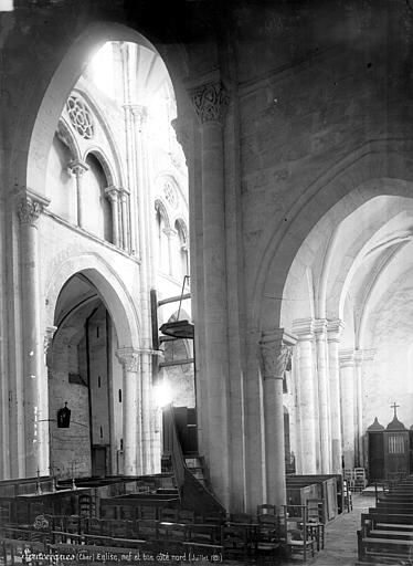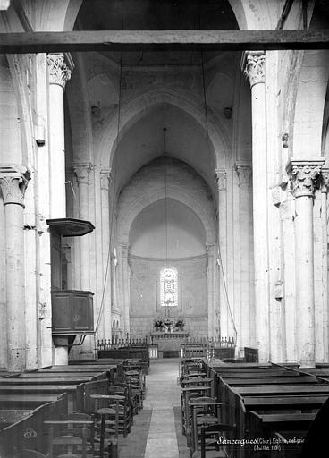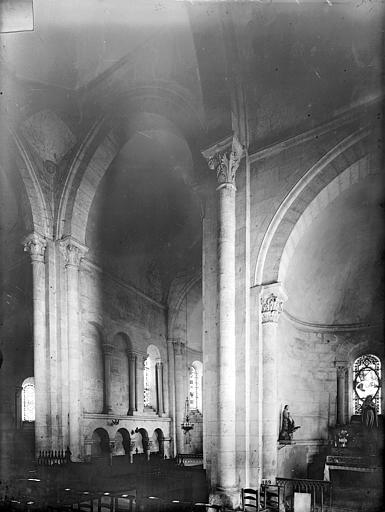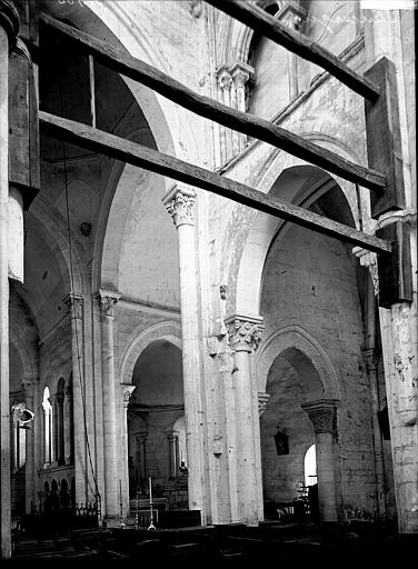 L'édifice comprend un chœur flanqué de deux chapelles du XIIe siècle, ouvertes sur un transept contemporain. Un clocher central, seulement amorcé, aurait dû s'élever sur la croisée du transept. La nef, avec bas-côtés, commencée à la même époque et poursuivie au XIIIe siècle, complétait le monument. Il n'en subsiste que deux travées, fermées à l'ouest par un mur en moellons. Les voûtes supérieures et les arcs-boutants sont détruits.