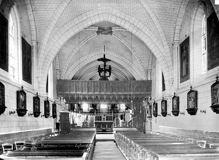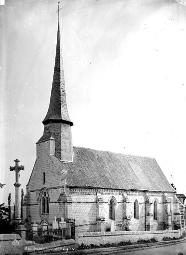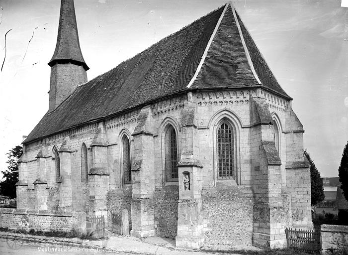 Ancienne chapelle royale, l'église Saint-Jacques-le-Majeur de Moulineaux devient église paroissiale au début du XIIIe siècle et dépendait du patronage de Saint-Julien de Petit-Quevilly. Les fonts baptismaux y sont consacrés en 1240. Le jubé en bois sculpté a été offert par la famille Carabas au XVIe siècle. L'édifice fait l'objet d'une restauration dans la seconde moitié du XIXe siècle menée par Lucien Lefort. Des peintures murales des XIIIe et XVIIe siècles ornent l'intérieur. Le chevet, la nef, le chœur, le jubé avec son escalier et les panneaux sculptés constituent les principaux éléments architecturaux et décoratifs visibles.