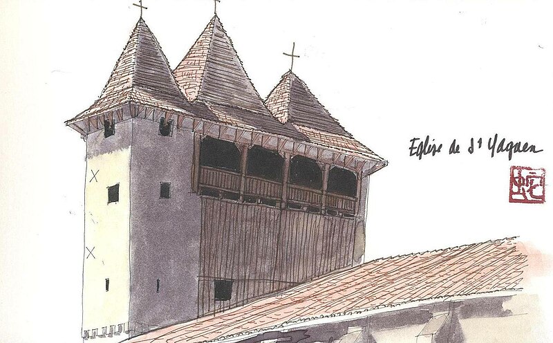 L'église Saint-Jacques-le-Majeur, située à Saint-Yaguen dans les Landes, est un édifice d'origine romane qui fut autrefois une étape sur une route secondaire du chemin de Compostelle. Son chevet se compose d'une abside encadrée de deux absidioles. La voûte de la nef, détruite en 1569 par les troupes protestantes commandées par Montgommery, a été reconstruite en 1870 par l'architecte départemental Alexandre Ozanne, qui a ajouté un bas-côté sud. Le cul-de-four de l'absidiole nord conserve un décor peint du début du XVIIe siècle. L'église est inscrite aux monuments historiques par arrêté du 2 septembre 2004.