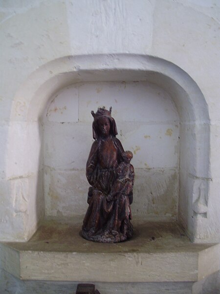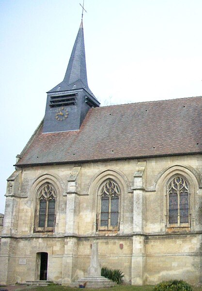 L'église présente une structure simple en deux parties distinctes : une nef du XVe siècle et un chœur plus élevé, qui fut la chapelle seigneuriale dédiée à saint Jean-Baptiste. La nef, en trois travées séparées par des contreforts, est percée de baies flamboyantes et voûtée en bois de châtaignier dont les corbeaux portent des têtes sculptées. Le chœur, également en trois travées, est de style flamboyant avec des baies plus larges et des voûtes de pierre ornées de nervures décorées de chaînes et de tiges et feuilles de pois. Une tourelle d'escalier se situe à la jonction sud de la nef et du chœur, et un clocher coiffé d'une flèche en ardoise surmonte la première travée de la nef. À l'extérieur, deux statues décorent l'édifice : saint Jacques au-dessus du portail et la Vierge sur un contrefort du chœur.