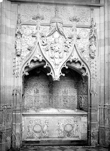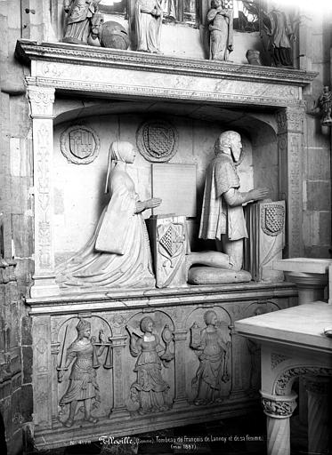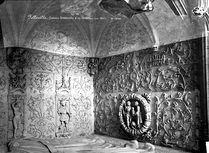 Du côté nord de l'abside, deux enfeus renferment les tombeaux de la famille de Lannoy : les gisants de Raoul de Lannoy et de Jeanne de Poix, en marbre de Carrare, furent réalisés par Antonio Della Porta et Pasio Gaggini entre 1506 et 1508 et furent qualifiés par Léon Palustre de « la création artistique la plus admirable de la France septentrionale ». Raoul porte la chaîne offerte par Louis XI et son épouse a la tête légèrement tournée vers lui. La décoration de l'enfeu, œuvre d'artistes locaux mêlant le style flamboyant et des éléments de la Renaissance, présente des sculptures de saints (Antoine ermite, saint Sébastien, saint Adrien), des scènes bibliques (Pietà, décollation de saint Jean-Baptiste), des symboles funèbres, arabesques et tiges de pois, ainsi que des pendentifs et une façade sculptés de saints, d'une Vierge à l'Enfant dans un grand lys entourée de fleurs et des symboles des évangélistes ; des statues de saint Claude et de saint Louis encadrent l'ensemble. Le second enfeu abrite le tombeau de François de Lannoy et de Marie d'Hangest ; daté d'environ trente ans après le premier, il illustre les premières formes de la Renaissance française, les défunts y figurant agenouillés et la paroi inférieure portant les médaillons des vertus cardinales : Justice, Prudence, Tempérance et Force.