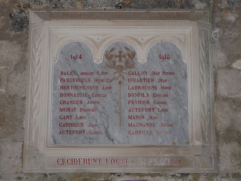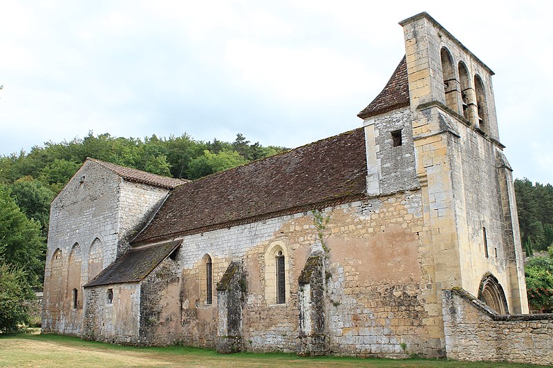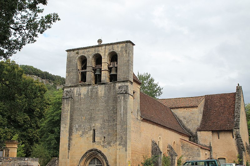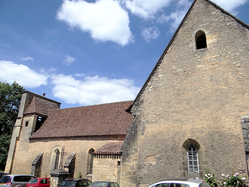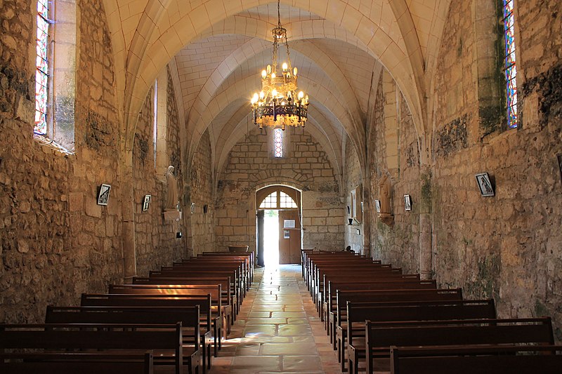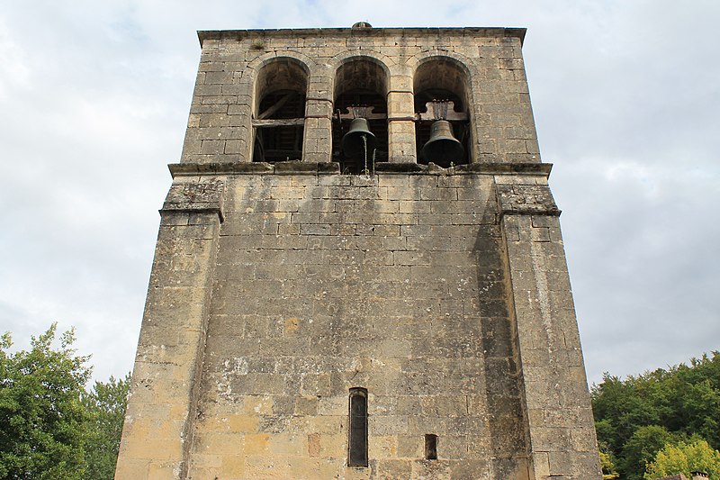 L'église Saint-Jean-Baptiste de Campagne, en Dordogne, se situe au sud-est du département, dans le Périgord noir, à l'angle des routes départementales 35 et 706, et jouxte le parc du château de Campagne. L'édifice, à une seule nef avec transept, est construit au XIIe siècle en style roman et dépendait d'un prieuré augustinien rattaché à Saint-Cyprien ; il accueillait une léproserie en 1321 et devient paroissiale à la fin du XIVe siècle. En 1427, les Anglais incendient le château et ravagent l'église ; une chapelle funéraire réservée aux seigneurs est alors ajoutée au sud du chœur. Le chevet plat, orné intérieurement et extérieurement d'arcatures en plein cintre aveugles, a vu sa baie centrale élargie ultérieurement. Quatre colonnes au chœur portent des chapiteaux romans sculptés de motifs géométriques ou en forme de crosse. La coupole sur trompe, primitivement octogonale, a été refaite en forme ovoïde. La nef très étroite (3,20 m de large pour 20,60 m de long) présente une litre funéraire noire ; deux chapelles latérales forment un faux transept avant le chœur roman. L'édifice est orienté sud-est–nord-ouest : le portail occidental en arc brisé est surmonté d'un clocher-mur à trois baies campanaires, dont deux conservent des cloches datées de 1626 et 1822. Côté sud, la chapelle funéraire communique avec le parc du château et est isolée du chœur par une grande porte massive en noyer ; elle se distingue par des culs-de-lampe représentant un animal et des têtes humaines, tandis que le reste de l'église reste sobre en sculpture. Les bâtiments actuels de la nef, des chapelles et du clocher-mur datent des XVe ou XVIe siècles. En 1841, une grande porte a été ajoutée entre le chœur et la chapelle funéraire ; en 1887, une fenêtre a été percée dans la chapelle nord donnant sur le parc, les toitures de la nef et des chapelles ont été refaites et plusieurs vitraux datés de 1887 ont été offerts à la paroisse. L'église est inscrite au titre des monuments historiques le 22 août 1949. En juillet 2025, la municipalité a interdit l'accès au public après la détection de désordres structurels majeurs au niveau des voûtes. Des photographies montrent notamment le portail, la nef, le chœur, la porte entre le chœur et la chapelle funéraire et le vitrail de la chapelle nord.