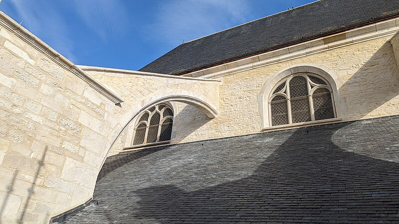 D'autres statues ornent les murs de la chapelle du Paradis, notamment une Éducation de la Vierge, un saint Syre, une sainte Reine, saint Jacques le Majeur et une Pietà; ces œuvres furent gravement endommagées lors d'un bombardement en juin 1940 puis restaurées. Les verrières présentent des cycles soignés : à l'ouest, la vie de saint Sébastien (1536) avec les donateurs ; au nord, une grisaille évoquant le Jugement dernier, le Paradis et l'Enfer ; à l'est, au-dessus du retable, une verrière de l'Apocalypse montrant notamment les quatre cavaliers et portant les armoiries de Sébastien David et Bertrande Le Tartrier. Un caveau sous la chapelle contient des inhumations antérieures à la Révolution et le sol y est pavé de petits carreaux en terre cuite.