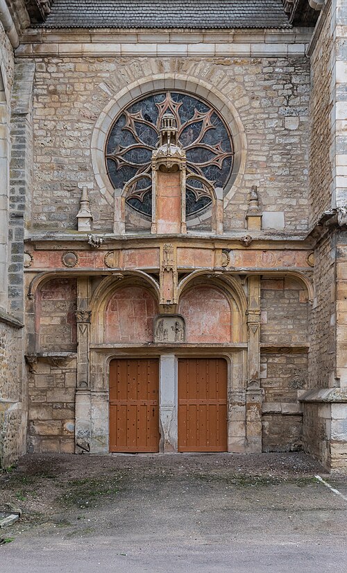 La chapelle du Sépulcre, construite en 1515 en contrebas du chœur, présente les armoiries de la maison de Monstier et abrite un groupe sculpté polychrome composé d'un tombeau et de huit personnages — trois gardiens et les figures de Joseph d'Arimathie, Nicodème, la Vierge et plusieurs saintes — une Mise au Tombeau attribuée à un atelier lié au maître de Chaource et considérée parmi les plus émouvantes. Les donateurs Nicolas de Monstier et Jacqueline de Laignes sont représentés en orants sur un groupe plus petit et une inscription mentionne leur fondation; la voûte conserve des fragments de peinture polychrome, dont une scène du Noli me tangere.