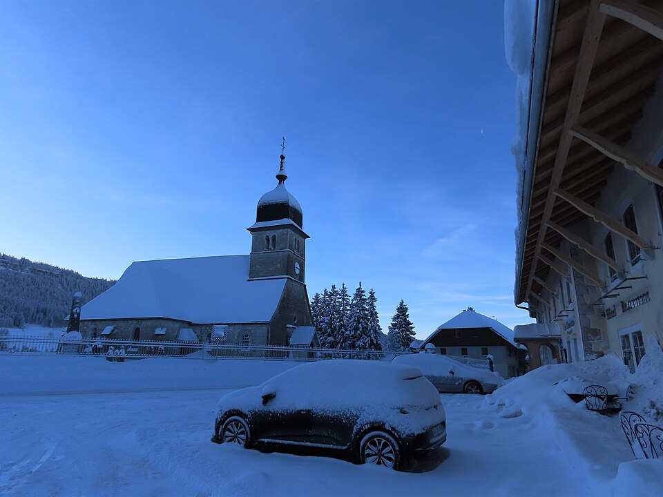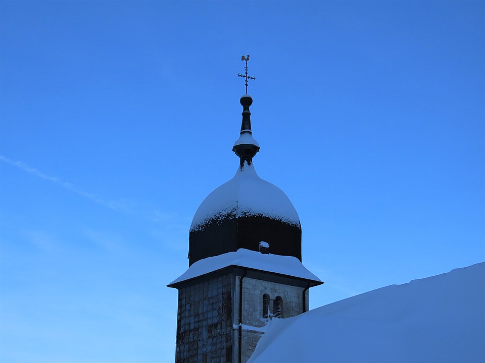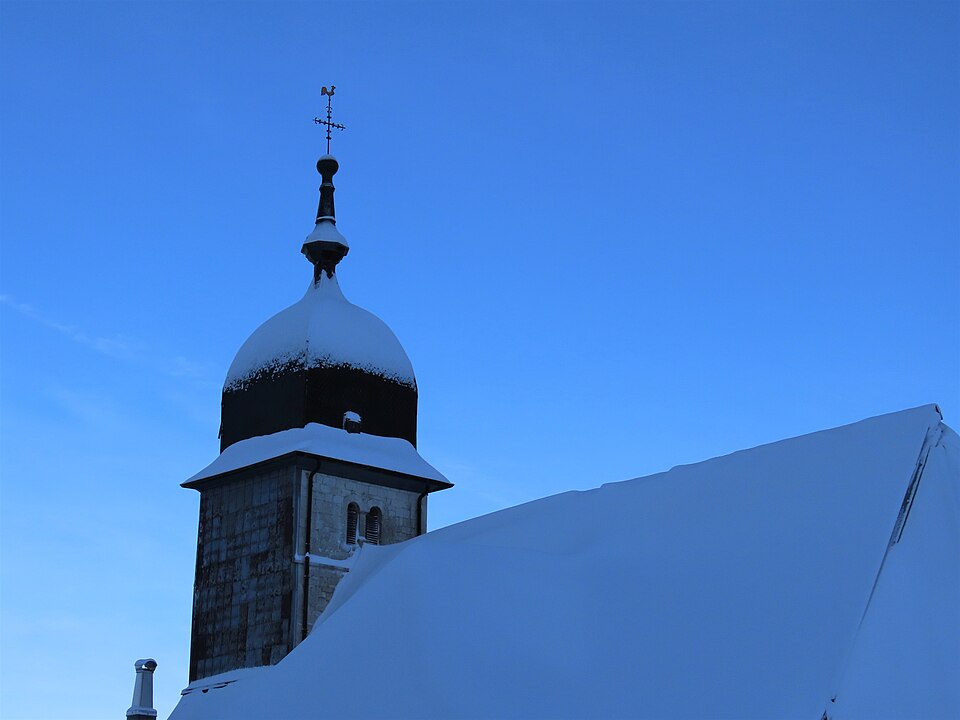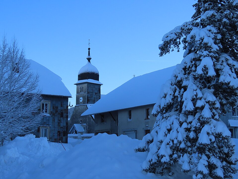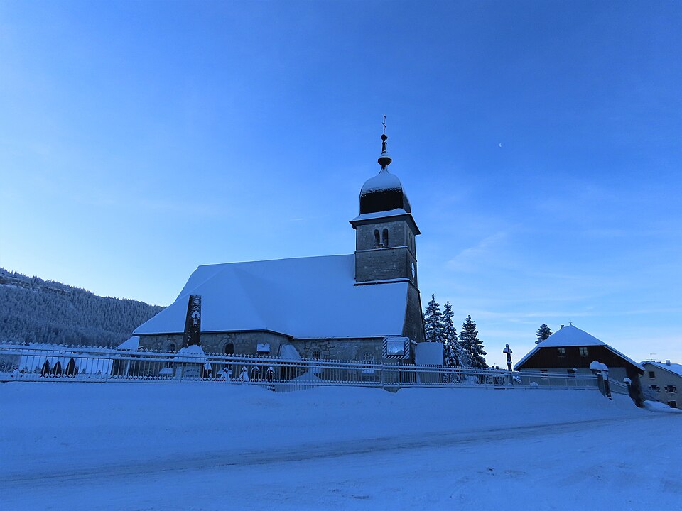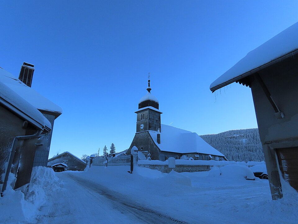 L'église Saint-Jean-Baptiste de Chapelle-des-Bois se situe à Chapelle-des-Bois, dans le département du Doubs. Elle a été construite en 1634, remaniée dans la première moitié du XVIIIe siècle (mentions datées de 1733 et 1738) et dotée d'une sacristie droite au XIXe siècle. L'édifice est inscrit au titre des monuments historiques depuis le 2 mars 1981. Il fait partie de la paroisse de Mouthe, rattachée au diocèse de Besançon. L'église présente un plan allongé avec trois nefs couvertes de voûtes d'ogive. Le clocher est surmonté d'un dôme à l'impériale, caractéristique de la Franche-Comté, et la toiture est un toit à longs pans en métal. Plusieurs éléments du mobilier sont protégés en tant qu'objets aux monuments historiques : l'ensemble du maître-autel, daté de 1743 et richement décoré, est classé depuis le 12 février 1981, de même que les autels latéraux droit et gauche, datés de 1748. Sont inscrits à titre d'objets des lustres en bronze et cristal du XVIIIe siècle (inscrits en 1981), des chandeliers d'autel en cuivre (inscrits en 1981), un Christ en croix du XVIIe siècle (inscrit en 1980), un tableau de la Visitation (inscrit en 1980), la chaire à prêcher (inscrite en 1979) et une statue de Saint Jean-Baptiste (inscrite en 1978).