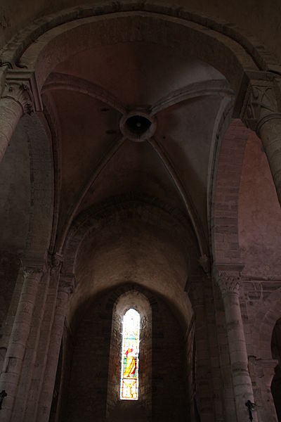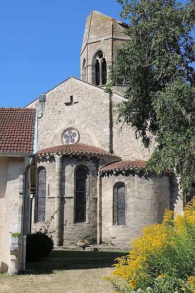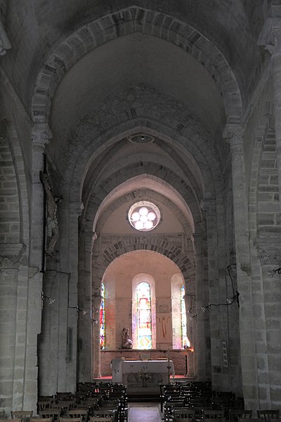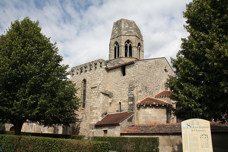 L'église Saint-Jean-Baptiste est située à Charroux, dans le département de l'Allier. L'édifice, daté du milieu du XIIe siècle, comprend une nef de quatre travées flanquée de bas-côtés, deux transepts avec clocher et flèche en pierre sur la croisée, un chœur d'une travée avec bas-côtés et un sanctuaire de plan semi-circulaire bordé de deux absidioles. La nef, les transepts et la travée du chœur sont couverts de berceaux d'ogives, tandis que les bas-côtés présentent des voûtes d'arêtes; la travée de la croisée est voûtée en ogive sur nervures; l'abside centrale et les absidioles sont voûtées en quart de sphère. Une chapelle qui s'ouvre sur la dernière travée du bas-côté gauche et une tourelle d'escalier dans l'angle du transept nord et du bas-côté du chœur datent de la fin du XVe siècle. Le clocher et la flèche ont été rebâtis à la fin du XIIIe siècle; aujourd'hui subsistent seulement l'étage du beffroi, de plan octogonal, et un tronçon de la flèche. Au transept sud, des restes de corbeaux de machicoulis, établis au début du XVIe siècle, témoignent de l'intégration de l'édifice dans la défense de la ville. Les chapiteaux des piles sont ouvragés. Le vitrail de saint Sébastien est l'œuvre de Lucien Chatain. Longtemps attribuée à tort à la Révolution, la dégradation du clocher a été expliquée en 2019 par l'érudit régional Raymond Bonnal qui a retrouvé dans un manuscrit que la foudre l'avait endommagé en 1662. L'édifice est classé au titre des monuments historiques par arrêté du 3 septembre 1912. Parmi les éléments remarquables figurent le clocher tronqué et le porche gothique.