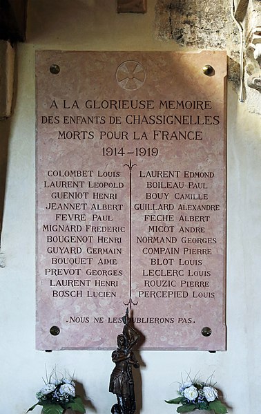 L'église Saint-Jean-Baptiste se trouve à Chassignelles, dans le département de l'Yonne en Bourgogne, à l'extrémité haute du village, à environ 400 mètres du canal. Classée au titre des monuments historiques en 1971, elle date du XIIe siècle et relève du style roman bourguignon. L'édifice comprend quatre travées, quatre chapelles latérales, une voûte en arc brisé et une toiture couverte de laves. Située en dehors et au sommet du village, l'église présente des éléments défensifs : un logement dans le mur derrière la porte destiné à une barre et des archères dans le clocher. Le territoire dont dépendait l'édifice appartenait en partie aux Templiers de la commanderie de Saint-Marc à Nuits-sur-Armançon. Toujours église paroissiale de Chassignelles, elle est surtout remarquable pour son ensemble de peintures murales.