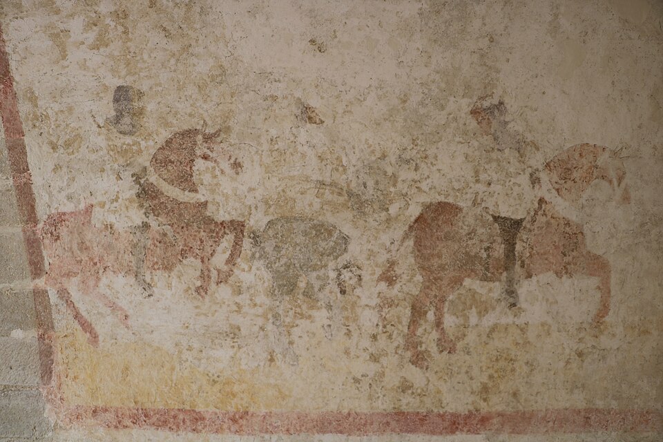 Un bandeau noir peint en pied de voûte court sur tout le périmètre de l'église : il s'agit d'une litre funéraire apposée en signe de deuil du seigneur local et datée de 1691, associée au blason de Louvois, ministre de Louis XIV, propriétaire du château d'Ancy-le-Franc et seigneur de la localité voisine. Sous le porche, des vestiges de la fin du XVe ou du début du XVIe siècle subsistent sur la voûte nord et montrent trois cavaliers ; l'ensemble peint sur les voûtes nord et sud ainsi que sur le mur est évoquait le "Dit des trois morts et des trois vifs", tandis que trois squelettes sur la voûte sud et un calvaire sur le mur est sont aujourd'hui effacés.
