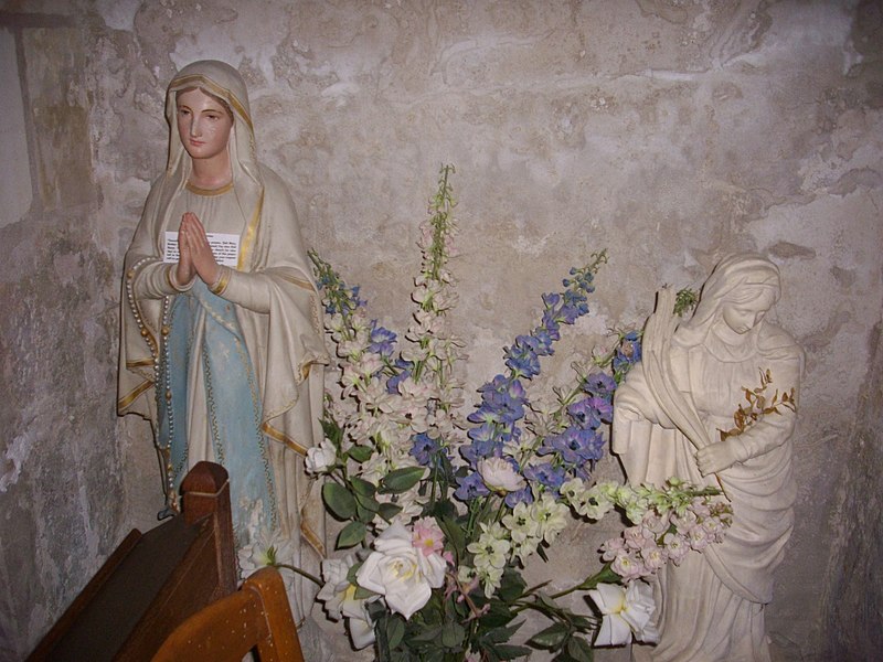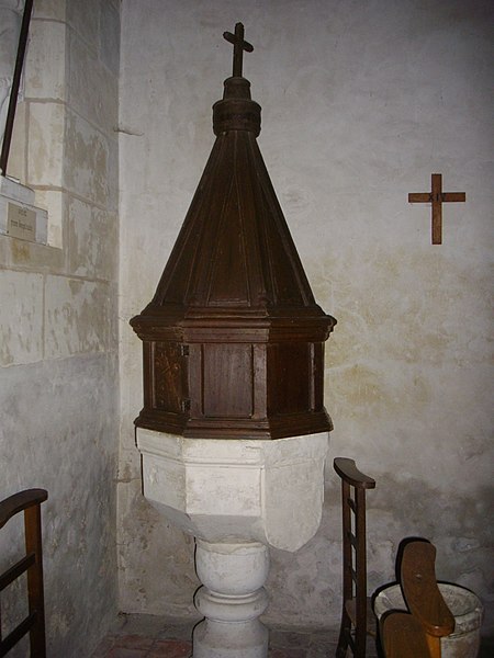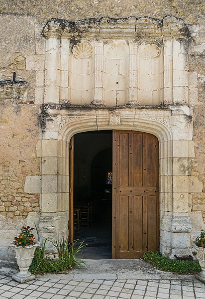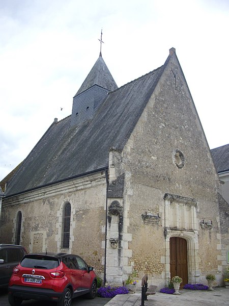 Église romane, probablement du XIIe siècle, dont la nef a été reconstruite en 1515. La façade s'ouvre sur une porte en anse de panier encadrée de deux pilastres dont les chapiteaux portent un linteau aux écoinçons ornés de feuilles de chardon. Au-dessus, trois niches Renaissance à coquille sont ménagées entre des pilastres cannelés. L'abside romane, voûtée en cul-de-four, est éclairée par trois fenêtres en plein cintre. La nef est couverte d'une charpente lambrissée. Un petit clocher en charpente surmonte la nef.