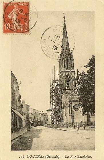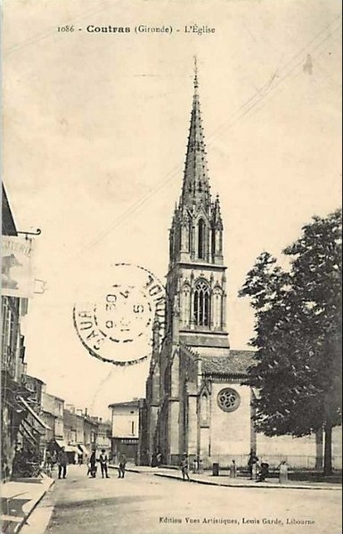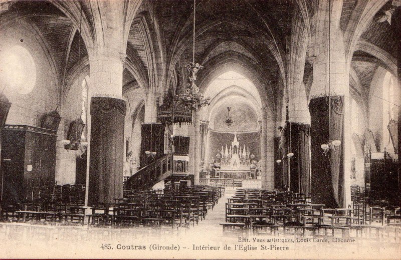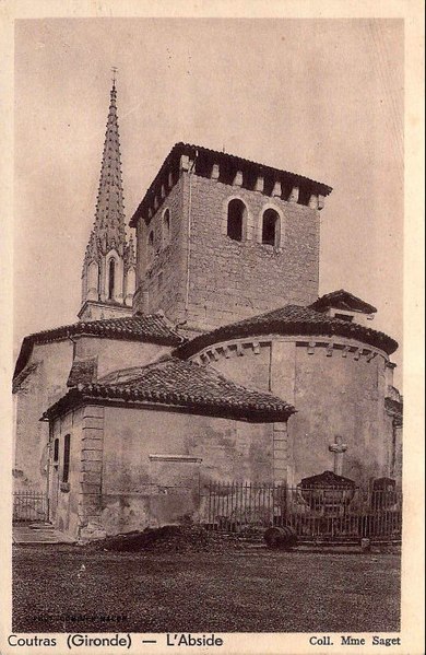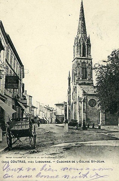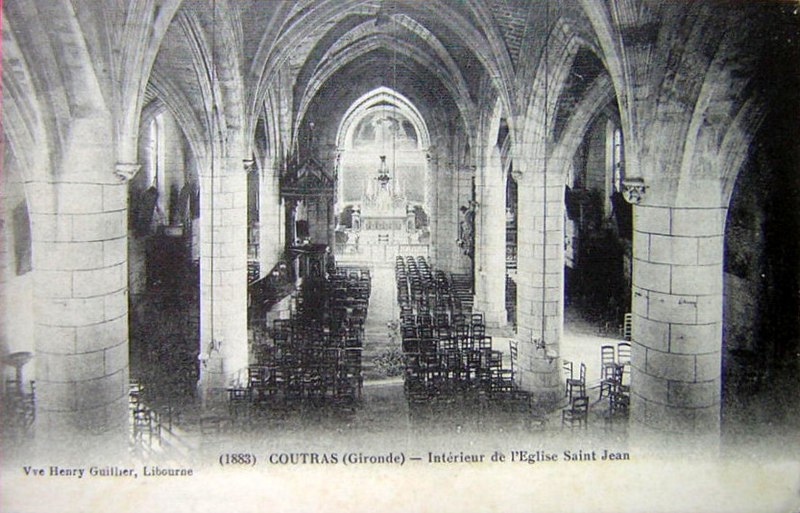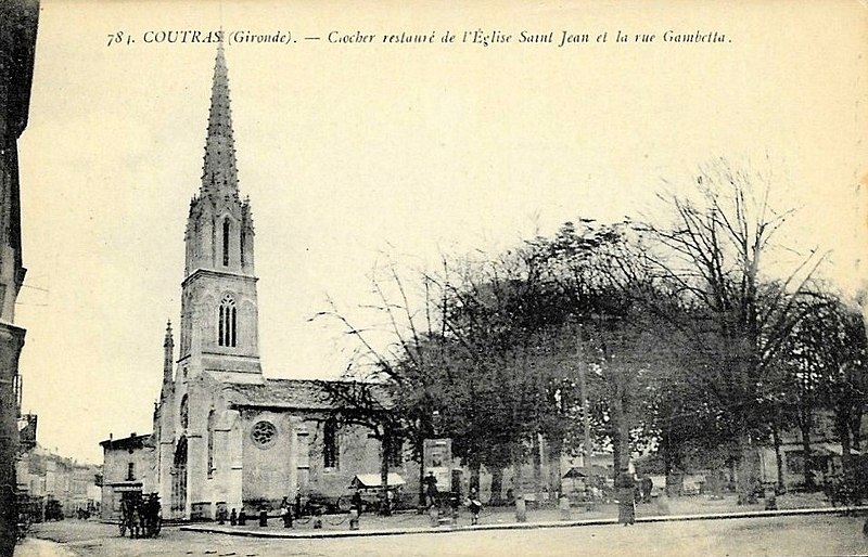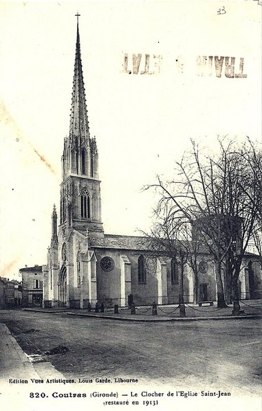 L'église Saint-Jean-Baptiste, située au centre de Coutras près de l'hôtel de ville, est un édifice catholique de la Gironde. Construite à l'origine au XIIe siècle dans un style roman, elle a été agrandie par l'adjonction de deux bas-côtés aux XVe et XIXe siècles. En 1874, l'architecte Charles Durand a remplacé la façade ouest et le porche par une extension vers l'ouest de la nef et par un nouveau porche surmonté d'un clocher de style néogothique. L'abside et la coupole de la travée précédente ont été inscrites au titre des monuments historiques par arrêté du 21 décembre 1925. L'édifice présente un chevet roman, un portail latéral sur la façade sud et une nef illustrant les différentes campagnes de construction.
