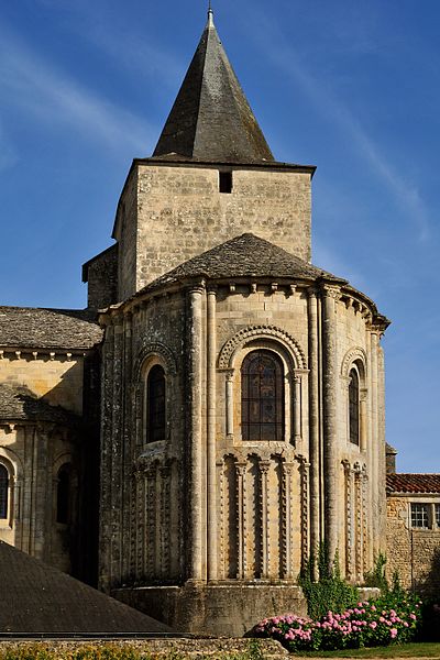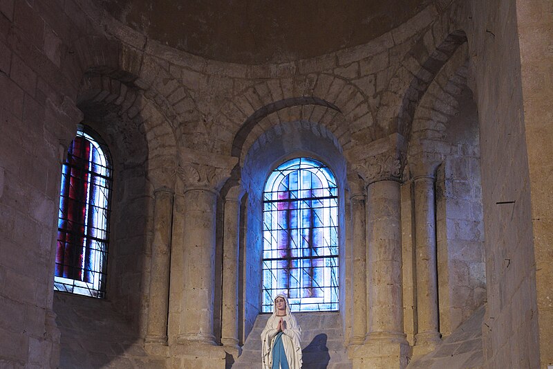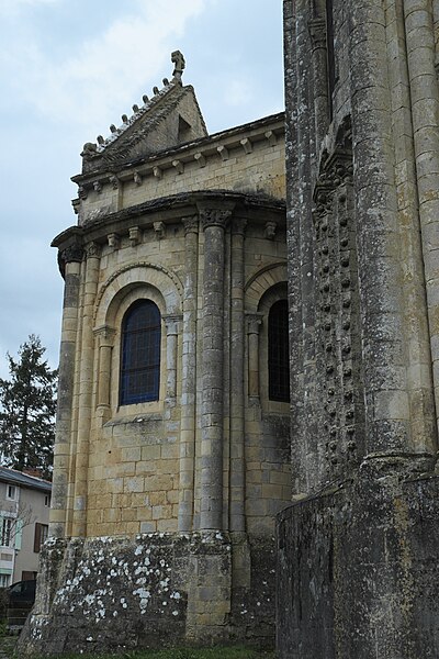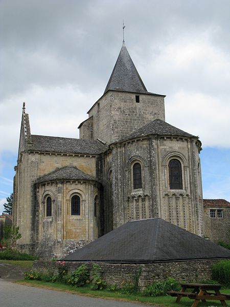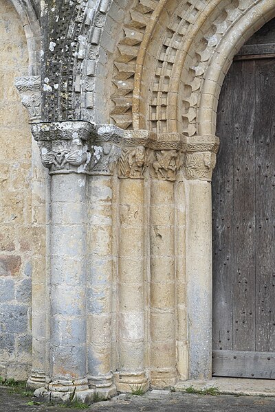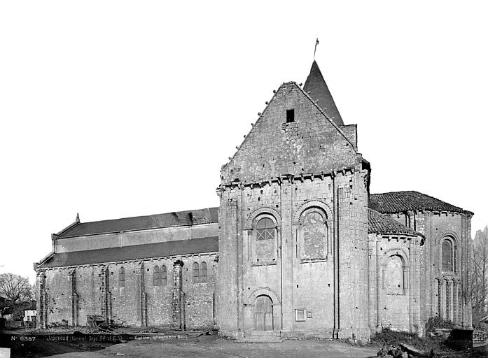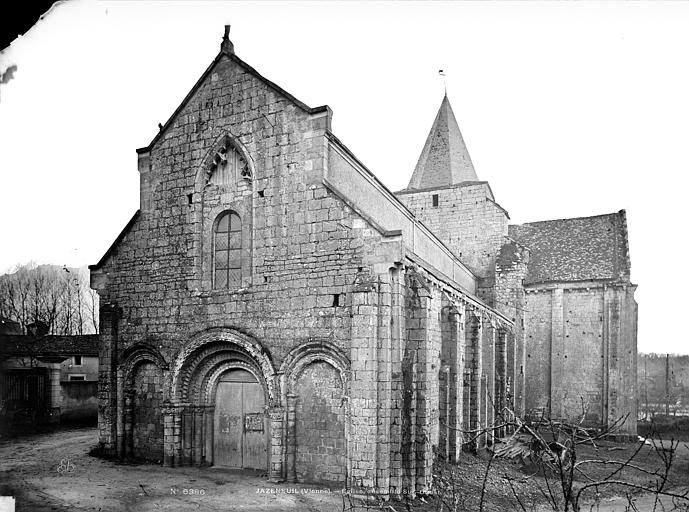 L'église Saint-Jean-Baptiste est une église catholique située à Jazeneuil, dans le département de la Vienne ; elle domine modestement la Vonne, affluent du Clain. Classée au titre des monuments historiques en 1883, elle constitue un bel exemple d'architecture romane du XIIe siècle par la qualité de sa sculpture et ses formes. Avant l'édifice actuel, le site abritait trois chapelles dédiées à la Vierge, à sainte Geneviève et à saint Macou, dont l'existence est attestée dans un document de 681 relatif au transfert des reliques de saint Léger. Le vocable de saint Jean‑Baptiste semble avoir été attribué vers le XIIe siècle, sans doute en lien avec la présence d'une source qui coule sous le chœur et aboutit à la fontaine dite de Saint Macou. Cette fontaine servait autrefois à plonger les enfants au développement retardé, appelés « les Macouins », afin de stimuler leur croissance. Jazeneuil relevait de la châtellenie de Lusignan, ce qui peut expliquer certaines similitudes de style entre les édifices des deux localités. En 1584, l'église, alors inutilisée, et le prieuré accueillirent un synode protestant réunissant vingt-trois pasteurs et autant de laïcs. À partir de 1988, l'église et ses abords ont fait l'objet de plusieurs campagnes de rénovation : création du parvis, restauration des toitures en lauzes de l'abside et de l'absidiole, restauration du transept, du clocher, de la façade occidentale et de la tourelle d'escalier, ainsi que la création de vitraux modernes entre 1999 et 2007. Depuis 2019, des initiatives locales ont accru la mise en valeur du site par des visites guidées et son intégration dans les circuits touristiques de la Vienne, tandis qu'en 2024 des expositions et concerts ont animé l'église. Le plan est simple : une nef initialement à vaisseau unique, un transept saillant et un chœur avec abside en hémicycle ; la construction remonte au troisième quart du XIIe siècle. La façade occidentale présente un large portail en plein cintre du XIIe siècle, entouré d'arcades aveugles et soutenu par dix colonnettes aux chapiteaux sculptés ; l'archivolte comporte quatre voussures ornées de tores, billettes, palmettes et autres décors. Au-dessus du portail, une grande baie gothique a été ouverte et le pignon est couronné d'une croix antéfixe, créant un contraste entre la partie nue du pignon et la richesse du portail. La nef conserve des murs et une petite porte latérale nord anciens, tandis que le mur sud s'ouvre sur deux baies géminées en tiers‑point qui ne sont pas antérieures au XIIIe siècle. Le transept sud est épaulé par des contreforts à double ressaut ; il est percé d'une porte en plein cintre surmontée de deux fenêtres romanes, l'une subdivisée par un meneau portant un remplage flamboyant du XVe siècle et l'autre ornée d'ornements en forme de langues. Le pignon du transept, remanié au XVe siècle, présente des modillons sculptés et un cadran solaire canonial en demi‑cercle ; le croisillon nord a disparu au XVIIe siècle, mettant fin à la liaison avec le prieuré aujourd'hui en propriété privée. Le clocher, de plan carré, s'appuie sur le carré du transept ; il est massif, reconstruit et coiffé d'une flèche en charpente avec une toiture en ardoise. L'abside, remarquable, s'élève sur un soubassement de sept assises et s'orne de longues arcatures en plein cintre accouplées entre des contreforts à trois colonnes ; chapiteaux et modillons sont richement sculptés de palmettes, feuillages, animaux et têtes humaines. À l'intérieur, l'édifice mesure plus de 43 mètres de long, 10 mètres de large et 12 mètres de hauteur sous la voûte ; la nef, divisée en six travées, a été réaménagée au XIXe siècle pour former un large vaisseau central et deux collatéraux étroits et est voûtée dans un style néoroman. Le carré du transept est couvert par une coupole sur pendentifs reposant sur arcs en tiers‑point et colonnes jumelles ou groupées, tandis que le croisillon sud conserve une voûte en berceau brisé renforcée par un doubleau en tiers‑point. Le chœur comprend deux travées voûtées sur croisées d'ogives aux nervures épaisses reposant sur de fines colonnettes et comporte cinq baies séparées par de longues colonnes dont les chapiteaux présentent des motifs végétaux et figurés, reprises dans l'abside. Les décors intérieurs comprennent des arcades en plein cintre sur colonnettes aux chapiteaux sculptés de palmettes, volutes, monstres affrontés et colombes buvant dans un calice, symbole de l'Eucharistie courant dans les églises romanes de la Vienne. La date de 1164 est gravée sur le fût d'une colonne à droite de la porte de la sacristie, cette dernière datant de 1843‑1844. Le mobilier comprend un maître‑autel en forme de tombeau, un autel moderne installé au carré du transept et, de part et d'autre du chœur, deux statues représentant sainte Radegonde et saint Antoine de Padoue. Le vitrail axial du chœur, réalisé en 1869 par les frères Guérithault de Poitiers, représente le baptême du Christ ; deux autres verrières historiées du chœur figurent saint Louis et sainte Alodie. La grande baie gothique de la façade occidentale a reçu en 1999 un vitrail en verre fusionné créé par Thierry Gilhodez, complété de 2002 à 2007 par huit vitraux contemporains réalisés par Gilhodez, Jean‑Jacques Fanjat et Michel Guevel selon des techniques de verre fusionné et de verre plaqué, en collaboration avec le musée du vitrail de Curzay‑sur‑Vonne.