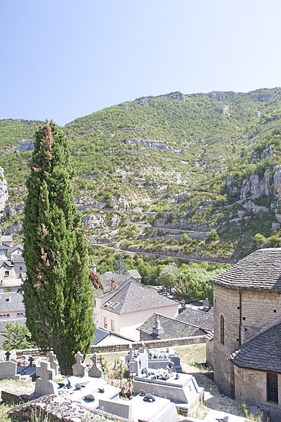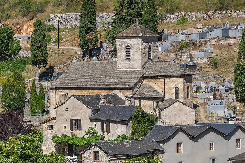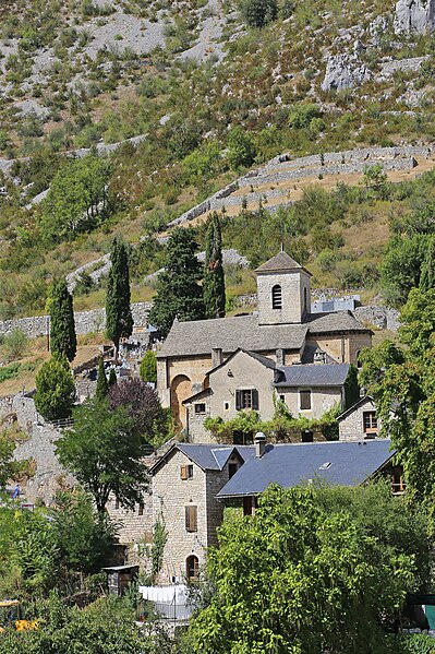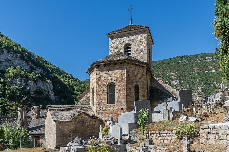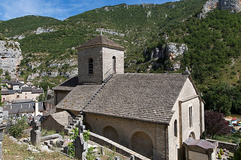 L'église Saint-Jean-Baptiste de La Malène (Lozère) est une église catholique romaine datant du XIIe siècle. Elle se compose de trois nefs, chacune se terminant intérieurement par une abside ou une absidiole de plan circulaire et extérieurement par un chevet polygonal. Les travées sont voûtées en berceau plein cintre. L'édifice est éclairé uniquement par sa façade sud ; il n'existe aucune ouverture sur le flanc nord. Au XVIe siècle, le presbytère a été construit contre le bas-côté sud. Au début du XIXe siècle, la quatrième travée du bas-côté nord a été percée pour édifier une chapelle destinée à la sépulture des trente victimes de la révolution de 1793. Plus tard, un étage de clocher de plan carré a été élevé sur la quatrième travée de la nef ; il est coiffé d'une calotte sphérique et orné de petites pyramides aux angles. L'édifice a été classé au titre des monuments historiques en 1928. Plusieurs objets de l'église sont référencés dans la base Palissy. Des ressources et illustrations sont consultables sur Mérimée, Palissy, Clochers de France, l'Observatoire du patrimoine religieux, Wikimedia Commons et les portails consacrés à la Lozère et aux monuments historiques.