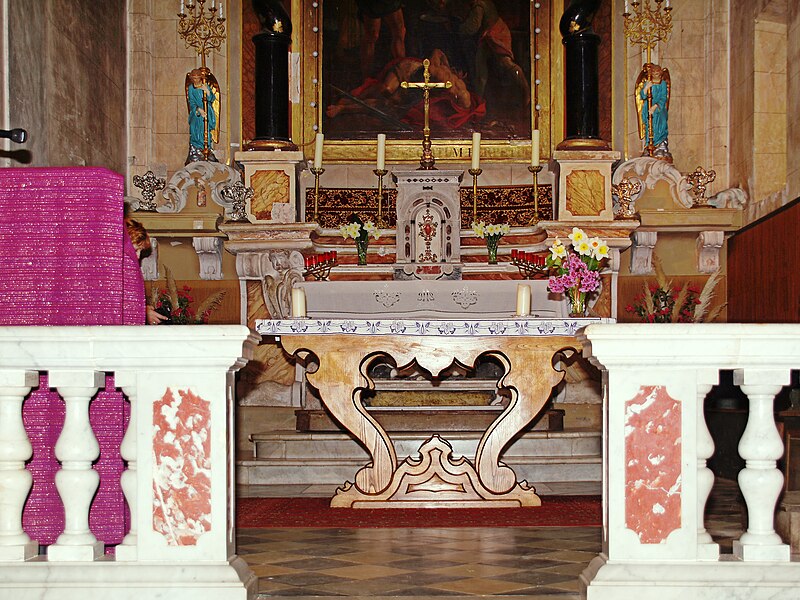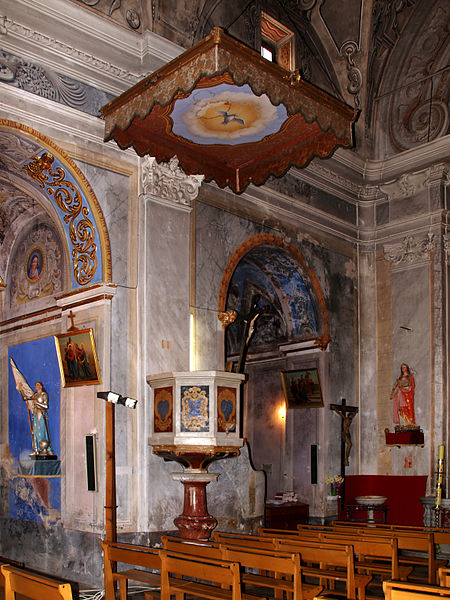 L'intérieur recèle un riche mobilier, propriété de la commune et classé aux Monuments historiques. La menuiserie comprend la tribune et le buffet d'orgue du XIXe siècle, classés en 1992. L'orfèvrerie comprend notamment un calice de 1777, des burettes et leur plateau datés des XVIIIe et XIXe siècles ainsi que huit vases d'autel, tous classés en 1992. Parmi les peintures figurent le tableau L'Annonciation et son cadre, offert par Napoléon III en 1855, ainsi que la Vierge à l'Enfant avec saint Joseph et saint Maurice du XVIIIe siècle, classée en 1992. Le patrimoine sculpté comprend une statue du Christ en Croix en bois polychrome du XVIIe siècle, classée en 1960, et un crucifix du Christ en Croix en bois polychrome du XVIe siècle, classé en 1970. Plusieurs retables en stuc accompagnés de leurs tableaux sont protégés : La Décollation de saint Jean-Baptiste (stuc et peinture à l'huile sur toile) classée en 1989 ; les retables et tableaux Saint Joseph et l'Enfant Jésus (daté et signé J. Giordani 1884), Saint François-Xavier (premier quart du XIXe siècle) et La Sainte Famille avec saint Antoine et saint Michel (fin XVIIIe siècle), tous classés en 1992. Une chape en soie brodée de fil métal doré du XVIIe siècle est également protégée et classée en 1970.