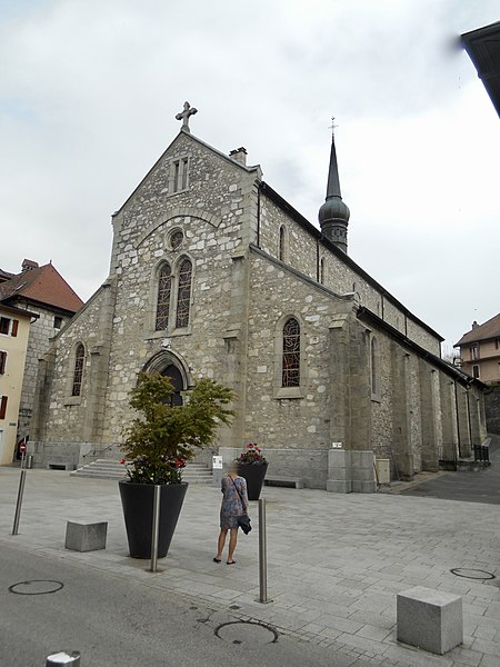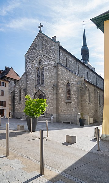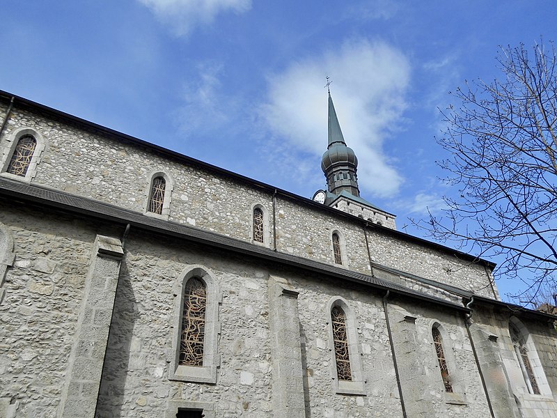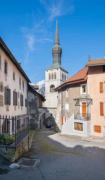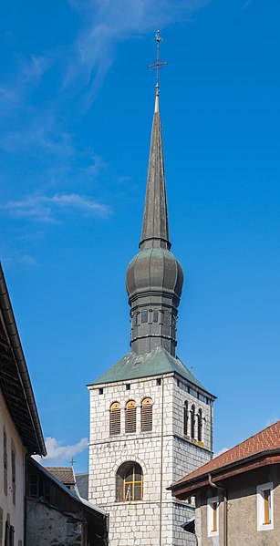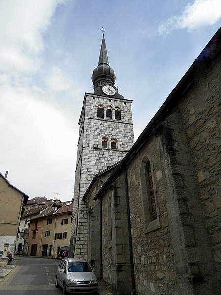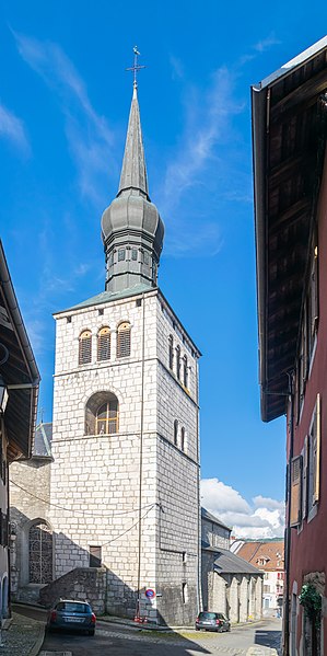 L'église Saint-Jean-Baptiste de La Roche-sur-Foron, située dans la commune du même nom en Haute-Savoie, est l'une des anciennes collégiales du diocèse de Genève. Selon Jean-Louis Grillet, l'édifice aurait été élevé en 1111 sous l'impulsion du comte Aymon Ier de Genève, tandis que d'autres sources attribuent la décision au comte Guillaume Ier à la fin du XIIe siècle. L'église est reconstruite à la fin du XVe siècle. Partiellement incendiée en 1507, elle est restaurée dix ans plus tard, puis détruite par un nouvel incendie en 1530. Elle est ensuite restaurée et agrandie en 1560. Le chœur et le clocher sont refaits au XVIe siècle, la nef au XIXe siècle. L'édifice est élevé au rang de collégiale en 1536 et inscrit au titre des monuments historiques en 1975. Son architecture se caractérise par un clocher à bulbe et des murs en pierre de taille. La bibliographie cite notamment Le Diocèse de Genève-Annecy (Éditions Beauchesne, 1985) et Les chemins du sacré : L'art sacré en Savoie (2007) de Raymond Oursel, et des notices complémentaires sont disponibles sur Wikimedia Commons, la base Mérimée et le site du diocèse d'Annecy.