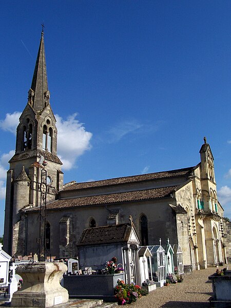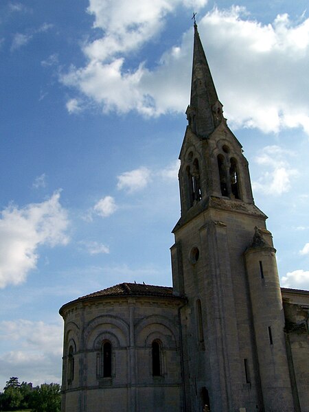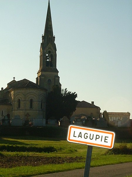L'église Saint-Jean-Baptiste est une église catholique située à Lagupie, dans le département de Lot-et-Garonne. Elle date des XIIe et XVe siècles ; de l'édifice roman primitif subsistent la façade, le chœur et le portail. En 1869, un architecte bordelais a allongé l'édifice de trois ou quatre mètres et a remplacé son clocher par une grande flèche. La façade occidentale, avec son portail roman intact, est inscrite au titre des monuments historiques le 30 décembre 1925. Le portail est encadré par quatre colonnettes aux chapiteaux historiés flanquant les piédroits ; les archivoltes comportent des tores correspondant à ces supports. Le tympan présente six compositions sculptées sur deux registres — personnages, animaux fantastiques et un monogramme — abrités sous des arcades. Parmi les sculptures se trouve la scène de Daniel dans la fosse aux lions, mais l'ensemble, fortement altéré par les intempéries, reste difficile à interpréter. L'abbé Barrère a identifié, parmi ces motifs, un poisson vu comme symbole du Christ selon saint Augustin ou comme image du chrétien régénéré par le baptême selon Tertullien, en référence au monogramme grec IXΘYΣ. L'abside s'ouvre par cinq fenêtres et la voûte en berceau plein cintre du chœur est d'époque moderne ; un arc doubleau la sépare du cul-de-four. Les chapiteaux de l'arc triomphal, représentant Daniel dans la fosse aux lions et la chute d'Ève, ont été refaits. La nef compte trois travées bordées de bas-côtés et présente des éléments stylistiques du XVe siècle. Georges Tholin notait que, après les restaurations modernes, il ne savait pas ce qui restait de la façade romane d'origine, à l'exception du portail qui n'avait pas été retouché.